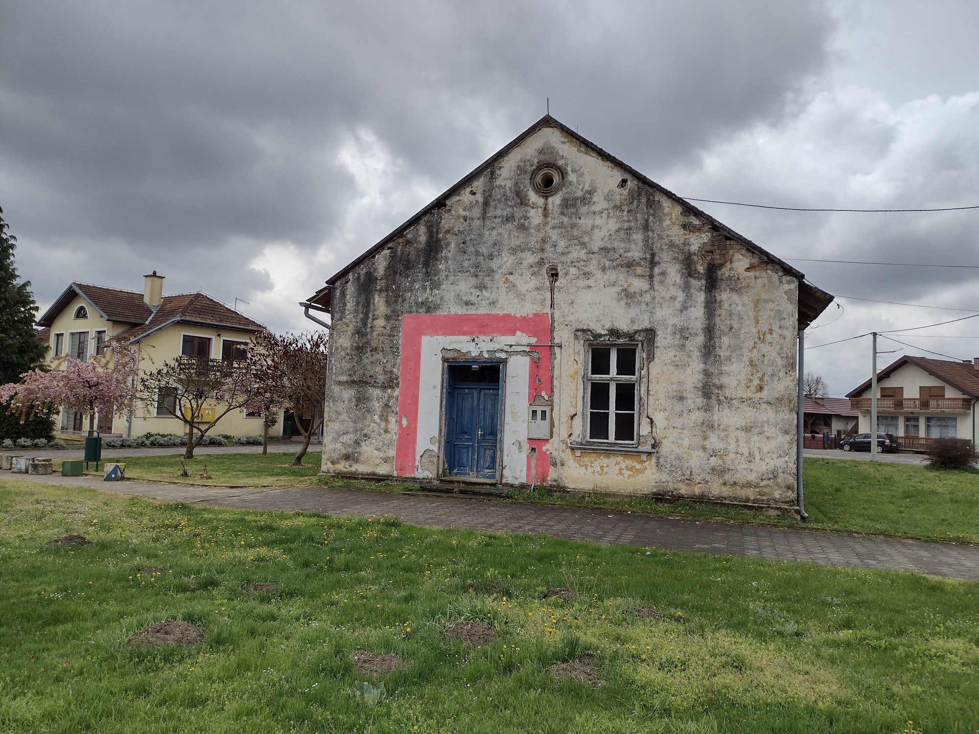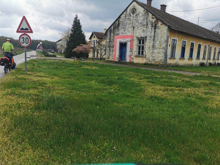 Auf dem Weg Richtung Nagykanizsa (Großkirchen) im Zentrum des gleichnamigen Kreises durchquerten wir Zalakomár. Am Ortseingang hatten sich, wie am Zustand der Häuser und Höfe unschwer zu erkennen war, überwiegend Sinti und Roma angesiedelt. Zwar war dieser Teil des Ortes optisch nicht besonders ansprechend, aber wenigstens war hier endlich einmal etwas los. Viele Menschen saßen bei voll aufgedrehter Musik vor ihren Häusern und Kinder spielten ausgelassen neben und auf der Straße. Bisher waren uns die Dörfer alle recht ausgestorben erschienen, was trotz guten Wetters aber auch mit den Osterfeiertagen zusammen gehangen haben kann. Im Laufe des Nachmittags war es dann allerdings mit dem guten Wetter vorbei und Regen setzte ein. Da es sich bald richtig eingeregnet hatte, gaben wir unsere Pläne auf noch am selben Tag die Grenze nach Kroatien zu überqueren und erneut zu zelten und versuchten stattdessen noch im Komitat Somogy eine Unterkunft zu finden. In dieser relativ dünn besiedelten und touristisch wenig bedeutsamen Gegend war das allerdings nicht so einfach. Wir fragten unterwegs in mehreren Kneipen und in der letzten klappte es nach einigen Telefonaten schließlich doch noch mit einer privaten Unterkunft in Zákány. Diese war offenbar für Arbeiter auf Montage konzipiert und war auch seit der letzten Nutzung nicht mehr anständig gereinigt worden. Dafür war der Preis deutlich zu hoch, aber da der Kontakt nur über Ecken zustande gekommen war, war auch eine Verhandlung über den Preis nicht mehr möglich. Immerhin ging die Heizung und wir waren froh einen trockenen und warmen Platz für die Nacht zu haben. Da wir vor den Feiertagen versäumt hatten genug Vorräte zu kaufen und sich tatsächlich seit Samstag Nachmittag keine Gelegenheit geboten hatte noch etwas aufzutreiben, wurden wir erfinderisch, gingen auf der Wiese hinter dem Haus Löwenzahn ernten und kochten uns daraus eine schmackhafte Suppe.