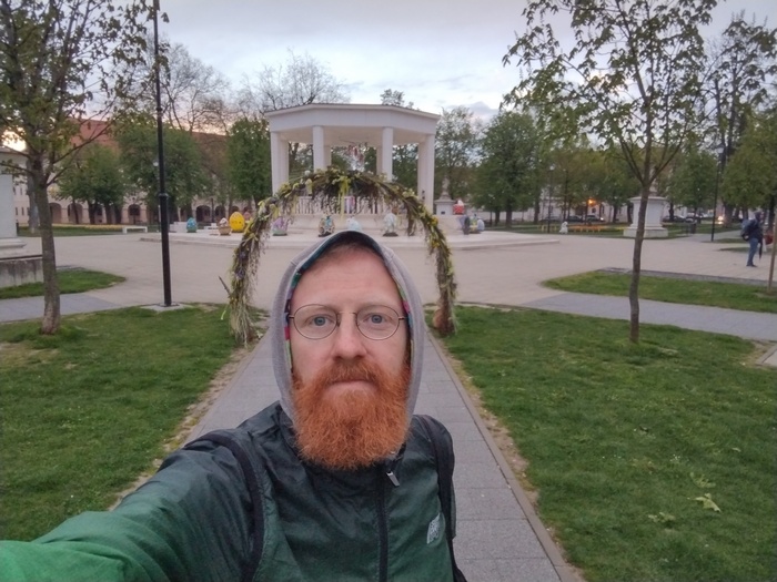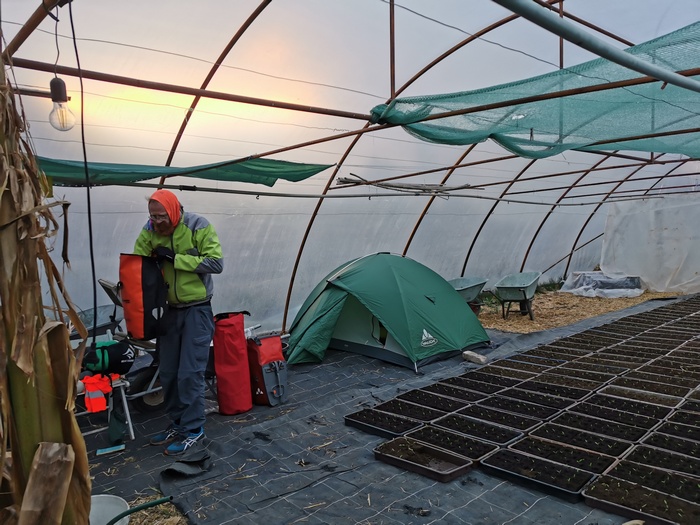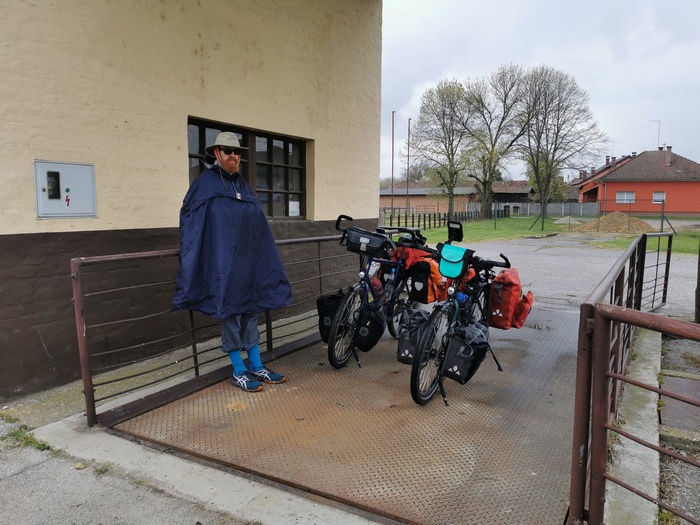 Abends nächtigten wir in Pamhagen, direkt an der ungarischen Grenze gelegen. Diese Gelegenheit hatten wir erneut über warmshowers.org organisiert. Unser Gastgeber war zum Zeitpunkt unserer Ankunft nicht zuhause, hatte uns jedoch zugesagt, dass wir einfach auf sein Grundstück gehen und unser Zelt in seinem Folien-Tunnel aufstellen könnten. Da uns der Wind den ganzen Tag um die Ohren gefegt war, waren wir ziemlich durchgefroren. Zum Glück konnten wir uns auf der geschlossenen Veranda aufhalten, wo wir uns endlich mal ein bisschen mit der Räderpflege beschäftigten. Später trafen wir noch den Onkel unseres Gastgebers, den eigentlichen Hausherren, dem unsere Ankunft zwar angekündigt worden war, der sie allerdings vergessen hatte und daher einigermaßen erstaunt war. Er kochte uns einen Tee und wir plauderten ein wenig, während wir uns in seiner Stube aufwärmten. Unseren Gastgeber trafen wir erst am nächsten Morgen, am Ostersonntag und Tag 15 unserer Reise, als er mit uns einen Kaffee trank und uns noch einige Tipps für unsere Balkan-Tour gab, da er wenige Wochen vorher eine große Runde bis über Rumänien, Serbien und Bosnien gedreht hatte um Berg zusteigen. Dass er am höchsten Berg Rumäniens, dem Moldoveanu (2.544 Meter), wegen 2 Meter hohem Schnee gescheitert war wunderte uns wenig.