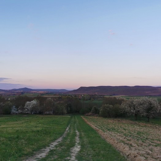 Wir brachen also nach Ungarn auf mit dem Ziel das Land in seinem äußersten Westen geradewegs von Nord nach Süd zu durchqueren. Wir hatten uns auf eintönige intensiv genutzte Agrarlandschaft eingestellt und waren daher überrascht wie abwechslungsreich sich die Gegend tatsächlich darstellte und wie extensiv dort offenbar noch Landwirtschaft betrieben wird. In Fertöd warfen wir einen Blick auf das Rokokoschloss der früheren Fürsten Esterházy. Mit moderatem Rückenwind machten wir Kilometer um Kilometer in der lieblichen Landschaft und kamen ohne größere Zwischenfälle bis nach Vindornyafok im Komitat Zala. Als wir dort einen Platz suchten, um unser Zelt aufzuschlagen trafen wir auf eine achtköpfige ungarische Familie, die uns ihren, am Hang eines Hügels oberhalb ihrer Datsche aufgestellten Wohnwagen für die Nacht anboten. Die Mutter sprach ein wenig Deutsch, allerdings gestaltete sich die Sache kommunikativ doch relativ schwierig. Als es dann darum ging, wie mit dem Schlüssel verfahren werden solle (sie waren gerade im Aufbruch begriffen) wurde es uns doch zu kompliziert und wir lehnten dankend ab. Wir durften das Zelt aber ein wenig unterhalb aufstellen, was uns noch kurz vor Einbruch der Dunkelheit gelang. Nun fiel die Temperatur rapide, sodass wir in der zur Verfügung gestellten Feuerschale noch schnell ein Feuer entfachten während wir das Abendessen zubereiteten. Der pinke Mond ging zwischen den Obstbäumen auf und uns stand eine eisige Nacht bevor.