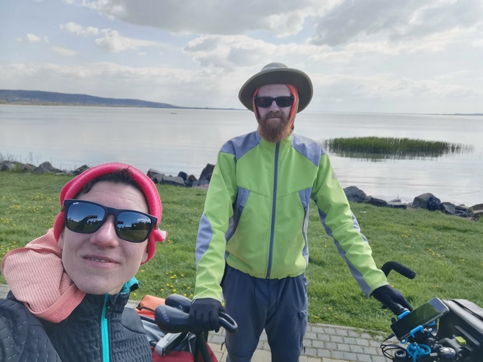 Am nächsten Morgen bemerkten wir, dass sich auf der Innenseite des Außenzeltes Frost gebildet hatte! Wir tranken schlotternd noch einen Kaffee, schluckten schnell unser Frühstück und sahen bereits gegen 7 Uhr zu, dass wir in Bewegung kamen, damit uns endlich warm wurde. Nach ein paar Kilometern fiel uns auf, dass wir bei unserer Ungarn-Durchquerung werde einen Besuch von Budapest (was scheinbar jeder grundsätzlich unterstellt) noch eine Visite des Plattensees vorgesehen hatten. Da dessen Westufer jedoch nicht weit war, entschieden wir uns in Héviz spontan nach Keszthely abzubiegen, um dem Meer der Ungarn die Ehre zu erweisen. Dort prangt ein prächtiges Schloss oberhalb der Stadt, aber wir waren noch weit vor den Öffnungszeiten dort. Auf dem Weg zurück zur ursprünglichen Route, die uns über die einzige Straße durch den zutrittsbeschränkten Nationalpark Kis-Balaton führen sollte, versuchten wir über eine Abkürzung eben jenen Nationalpark direkt zu durchqueren. Nachdem wir bereits einige Kilometer in diesen vorgedrungen waren, erspähten wir am Horizont einige Autos und ahnten bereits Böses. Zu Recht, denn ein Ranger trat uns in den Weg. „Stop, Visa, Police, bezahlen, zurück!“ machte uns klar, dass hier keine Diskussion möglich war und wir zähneknirschend den Rückweg antreten mussten. Das bescherte uns einen gehörigen Umweg.