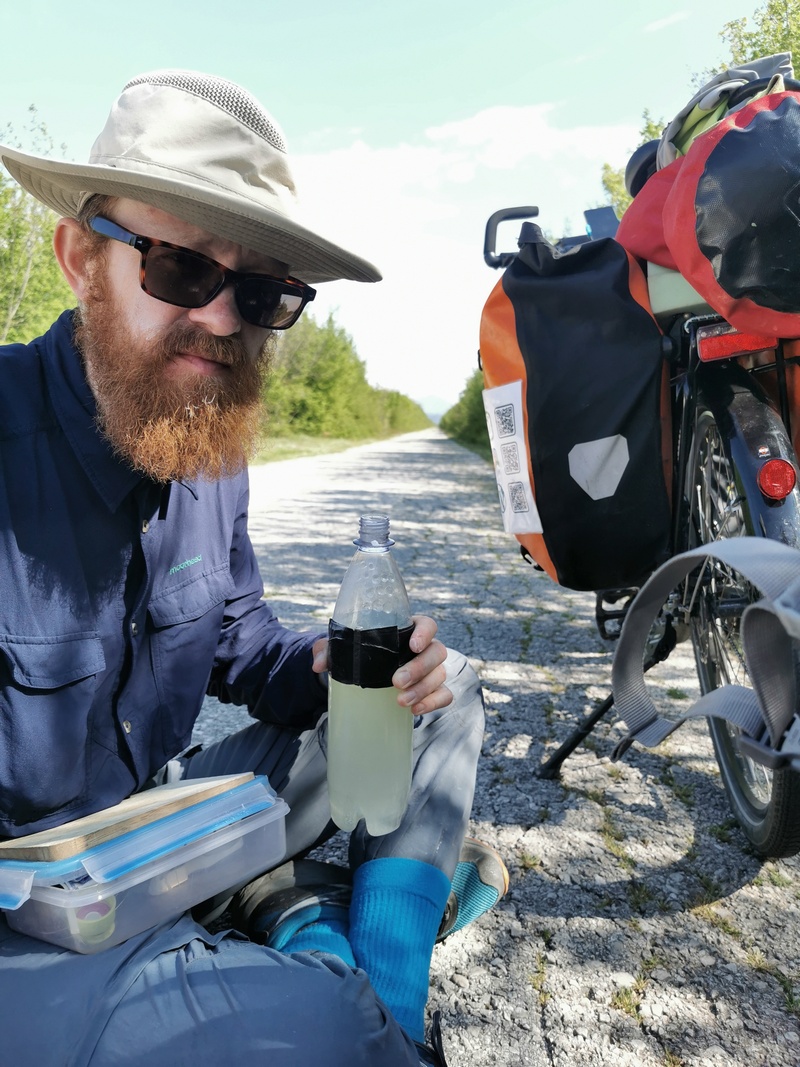 Viele Eurer Erlebnisse wecken schöne Erinnerungen wach (Abfahrten, schöne Aussichten und schräge Leute). Aber auch schreckliche, wie Lkw und Reisebusse, die einen beinah den Arm abrasieren und vor Allem Navigation mit Komoot!!! Wieso diese app überall Testsieger ist, bleibt mir ein Rätsel. Allein an guten Alternativen mangelt es. So ist man dann auch mal gezwungen, Flüsse zu durchwaten…