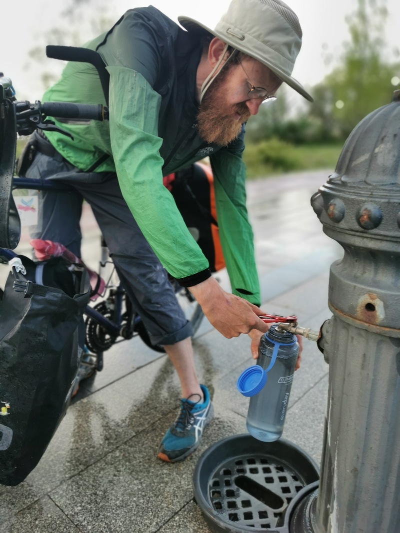 Wir fragten einen Imker, wo wir Wasser bekommen könnten. Er verwies uns an ein Restaurant, dass bald kommen sollte. Doch der Weg dorthin endete vor einem verschlossenen Tor. Um zum offiziellen Eingang zu gelangen hätten wir also eine sehr große Runde drehen müssen. Als wir uns gerade ausführlich darüber ärgerten, kam ein Schäfer des Weges (ja, in Nordmazedonien wird noch traditionelles Handwerk gepflegt) und plapperte lebhaft auf uns ein. Wir zeigten auf unsere Wasserflaschen und er erklärte ausführlich, aber für uns unverständlich, was zu tun sein. Anhand seiner Handzeichen reimten wir uns zusammen, dass er uns empfahl über das Tor zu klettern und so zu dem Restaurant zu gelangen. Etwas komisch fühlten wir uns dabei schon, auf der anderen Seite angekommen gelangten wir in einen gut gepflegten Hotel-Restaurant-Garten und liefen – aus einer Richtung, aus der ja eigentlich kein Besucher kommen kann – auf einen Mitarbeiter zu. Wir stellten uns schon darauf ein, dass dieser zumindest irritiert, wenn nicht sogar etwas verärgert reagieren würde, als wir ihn nach Wasser fragten. Doch entgegen unseren Befürchtungen war dieser überaus freundlich und kein bisschen verwundert, warum wir nicht durch den normalen Eingang kamen. Wir müssen einfach noch unsere deutsche Erwartungshaltung abschütteln. Er ließ uns freie Hand an dem Wasserhahn in der Bar und wünschte uns noch einen schönen Abend.