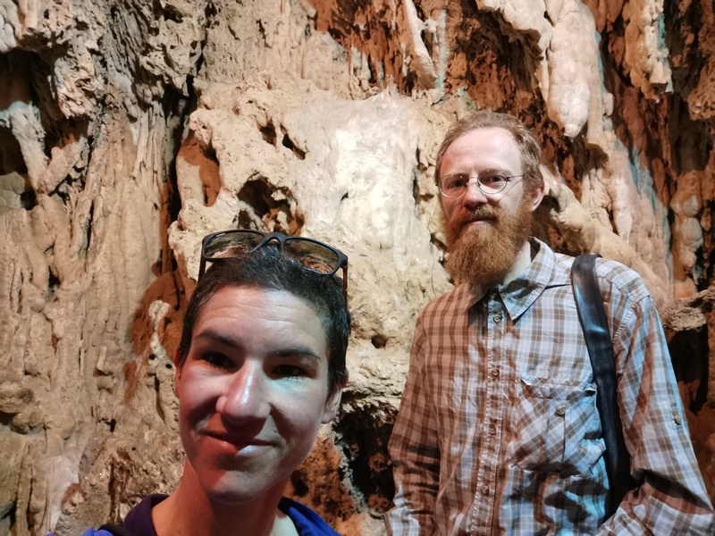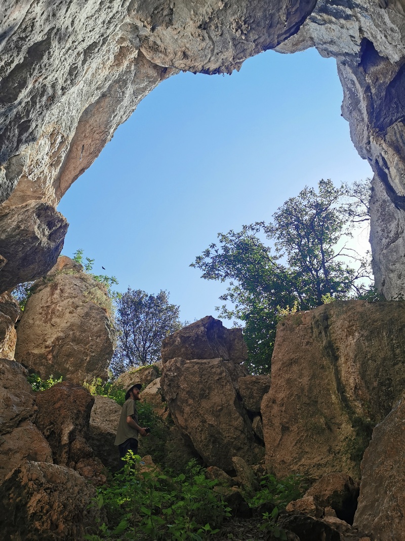 Der nächste Tag sollte nach Möglichkeit unser Ruhetag werden. Wir begannen ihn mit der Besichtigung der Eulen-Höhle, auf die direkt an unserem Schlafplatz ein kleines selbstgemaltes Schild hinwies. Ein verschlungener, teilweise kaum auszumachender Pfad führte uns dorthin und tatsächlich öffneten sich dort angekommen eine stattliche Höhle mit Blick aufs Meer. Eulen konnten wir dort nicht entdecken, jedoch einige Tropfsteine und Keramikscherben, vielleicht byzantinischen Ursprungs, vielleicht aber auch chinesischen. Ein gut verpacktes Kletterseil verriet uns die typische Nutzung dieses offenbar echten Geheimtipps.