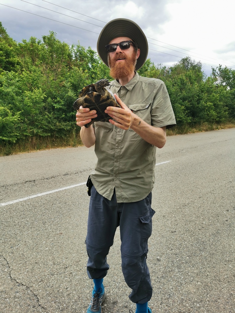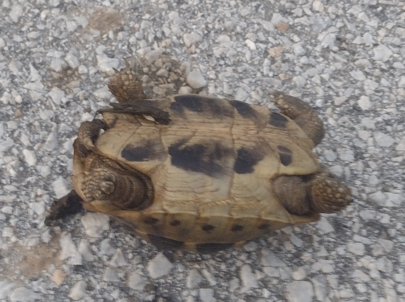 In Griechenland haben wir ein neues Hobby entdeckt: Schildkröten über die Straße tragen. Wer unseren Blog aufmerksam verfolgt weiß, dass wir uns dazu bereits in Bosnien zum ersten Mal veranlasst sahen, aber in Griechenland wurde es quasi zum Alltag. An den vielen an zerplatze Melonen erinnernde Kadavern auf den Straßen ließ sich zwar erkennen, dass wir nicht alle retten konnten, aber ein gutes Dutzend dürfte es doch gewesen sein. Allerdings war es nicht immer leicht auf der anderen Seite einen geeigneten „Abstellplatz“ zu finden, denn dort erwartete unsere kleinen gepanzerten Kameraden oft ein ca. 30 cm hoher Bordstein bzw. eine Fahrbahneinfassung. Wir waren uns nicht sicher inwieweit es für die Schildkröten hilfreich war, dass wir sie in der Regel auf der Kante absetzten, dennoch pinkelten uns einige vor Freude an, sobald wir sie in die Höhe hoben.