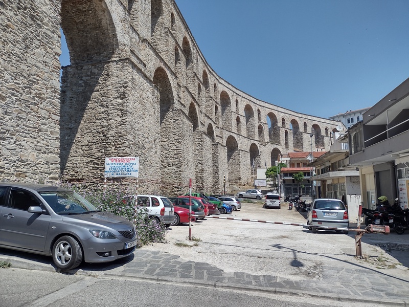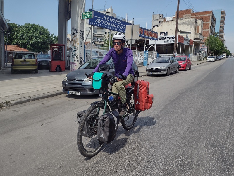 Im Anschluss steuerten wir den nächsten Campingplatz im 5 Kilometer entfernten Nea Iraklitsa an, den Kathrin bereits am Vortag angesteuert hatte und wo auch wir nun den Tag über bleiben wollten. Die Aussicht auf einem trockenen Stück Erde zwischen den beiden in die Jahre gekommenen Waschhäusern zu zelten, ließ uns jedoch davon Abstand nehmen. In der Annahme, der nächste Campingplatz in 10 Kilometern könne nur schöner sein, da dies kein Kunststück wäre, radelten wir weiter. Dort angekommen mussten wir jedoch feststellen, dass es diesen gar nicht mehr gab. Unser Ruhetag entwickelte sich also alles andere als ruhig. Nun mussten wir auch noch durch die Stadt Kavala und ihr anschließendes Industrie- und Gewerbegebiet fahren. Da wir davon ausgegangenen waren, dass Kavala die letzte richtige Stadt auf unserem Weg durch Griechenland sein sollte, wollten wir uns zudem noch mit einigen Euro-Banknoten eindecken. Auch hier kostete es uns einige Nerven und Versuche mit beiden Kredit- sowie der EC-Karte bis wir Erfolg hatten.