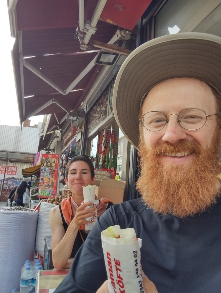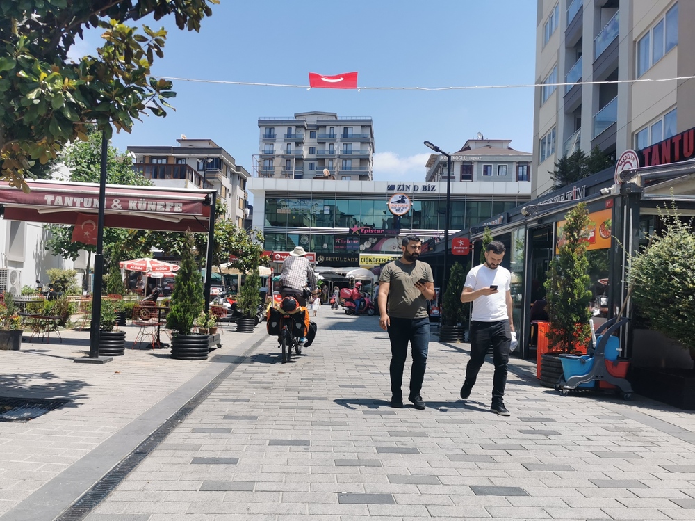 Um noch einen Versuch in Sachen Klick-Schuhe zu starten, steuerten wir für diesen Abend die rund 280.000 Einwohner*innen große Stadt Sakarya (oder heißt sie doch Adapazari, das ließ sich nicht einwandfrei feststellen) an, die wieder einmal nicht besonders schön oder interessant war. Offenbar hatte es hier immerhin vor nicht allzu langer Zeit Bestrebungen gegeben die Fahrradinfrastruktur zu verbessern, jedoch endeten die mit viel Bohei angekündigten Fahrradwege bei der Einfahrt in die Stadt mehrere Male in Sackgassen unterhalb von Zubringerstraßen. Das hatte natürlich auch Komoot nicht kommen sehen. Sehr überraschend hatten wir sehr kurzfristig innerhalb weniger Stunden wieder einmal einen Host über warmshowers gefunden. Der sehr hilfsbereite und freundliche Mehmet hatte eine großes Apartment, in dem wir ein eigenes Zimmer bekamen und die Waschmaschine nutzen konnten. Er war zwar nicht so begeistert uns seine Küche zu überlassen, versorgt uns dafür aber mit Cigköfte, Efes und türkischem Kaffee. Anschließend gingen wir mit ihm und seinem Arbeitskollegen Baris in den Park und bekamen von Baris noch einen riesigen Eisbecher ausgegeben. Baris sprach zwar kaum Englisch, legte beim durchqueren des Parks aber doch sehr viel Wert auf den an uns gerichteten Hinweis, dass es sich bei der um 22:30 Uhr zu lauter Musik tanzenden Familie um Roma handelte.