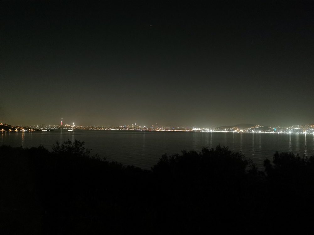 Unser Friede wurde jäh unterbrochen als ein Mann herbei eilte, der Kette rauchend aufgeregt auf uns einredete. Die einzigen uns verständlichen Worte „Camping – Problem – Police“ waren wir nicht gewillt ernst zu nehmen. Schließlich hatten wir von einem Einheimischen den Tipp bekommen, dass hier Camping gar kein Problem sei und wir glaubten keine Sekunde daran, dass die türkische Polizei sich um solche Angelegenheiten kümmerte. So blieben wir wo wir waren, in der Annahme dieser Herr sei nur genervt von den herumlungernden Taugenichtsen und versuche durch unfreundliches Auftreten diese zu vertreiben. Wir kochten einen Linseneintopf und genossen anschließend den Sonnenuntergang über der Millionen-Metropole. Kurz bevor wir in unser Zelt krabbeln wollten, zerriss der Strahl einer Taschenlampe die nächtliche Dunkelheit und der nun ernsthaft erboste Mann stand wieder vor uns, offensichtlich wollte er diesmal nicht so schnell aufgeben. Die Vermittlung mithilfe des Google-Translators verlief äußerst schleppen, da der Störenfried offensichtlich auch kaum des Lesens und Schreibens mächtig war und so beschlossen wir unseren Kontakt, der uns diesen Ort zum Zelten empfohlen hatte, anzurufen und um Vermittlung zu bitten. Es war nun bereits stockdunkel und jetzt noch einmal alles einzupacken und einen anderen Platz zu finden, erschien als ein Ding der Unmöglichkeit. Erneut sahen wir ein schlaflose Nacht auf uns zukommen. Unser Telefon-Joker zog dann aber alle Register: Nach einem ca. 20-minütigen Telefonat (wir hatten dem ungebetenen Gast zwischenzeitlich einen unserer Klapp-Hocker angeboten) lachte der eben noch unfreundliche Herr, spendierte uns sogar eine Zigarette und wir durften bleiben, solange wir kein Licht machten und uns ruhig verhielten. Da wir sowieso schlafen wollten, waren diese Voraussetzungen kein Problem für uns.