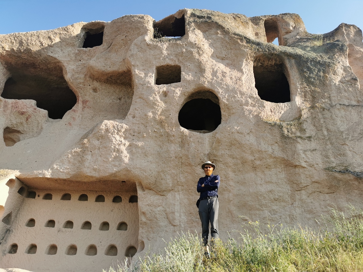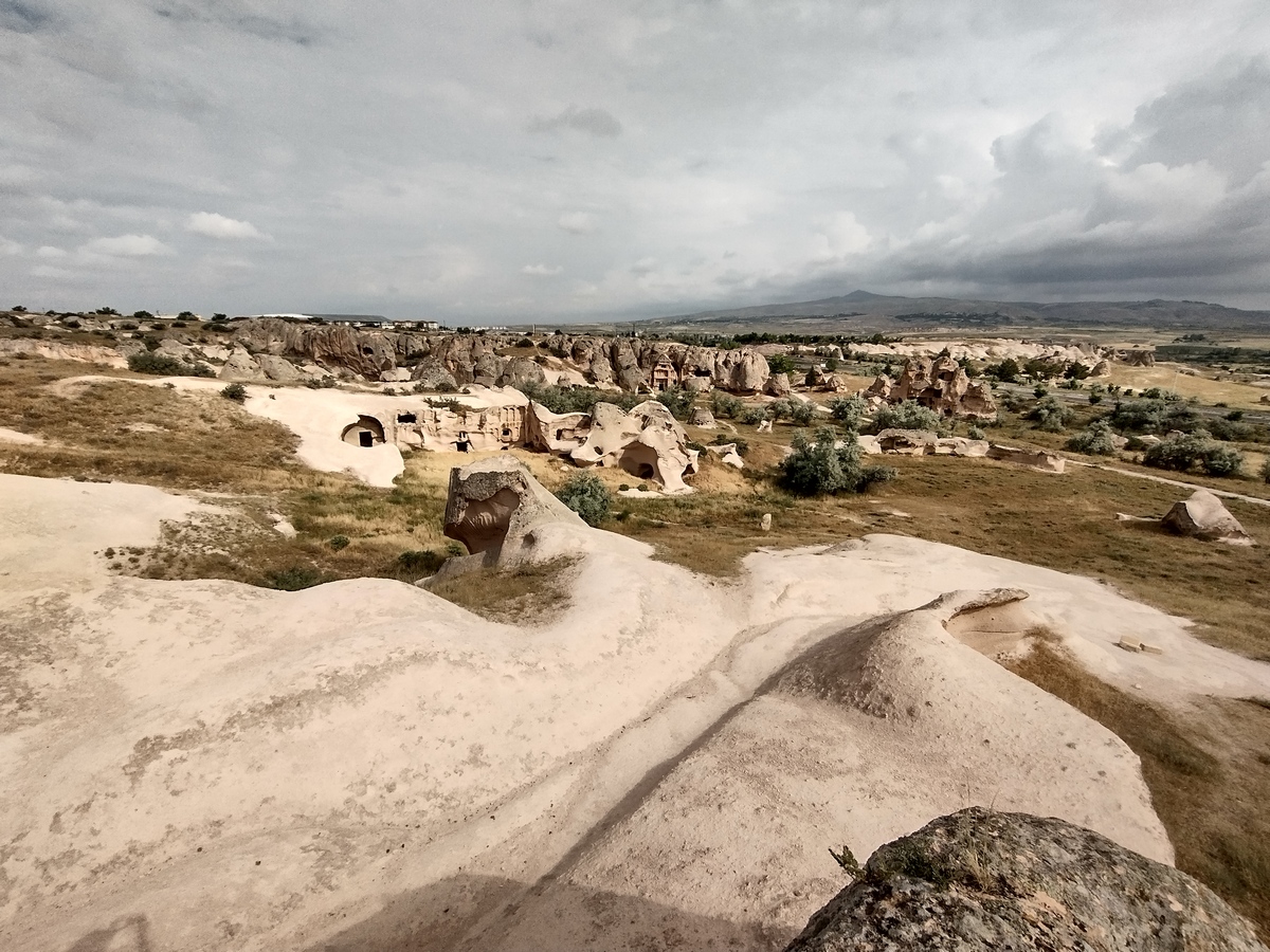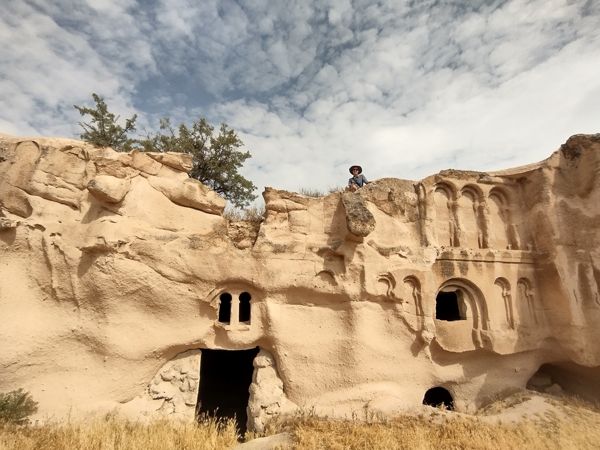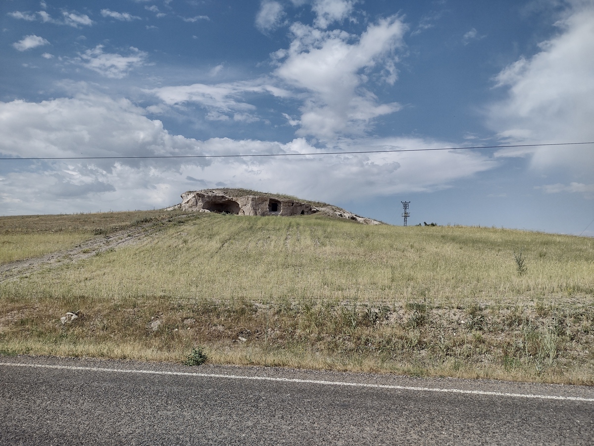 Am Nachmittag des 12. Juni, Tag 71 unserer Reise, erreichten wir endlich die Region Kappadokien. Bereits auf dem Weg dorthin säumten interessante Felsformationen den Weg, in manchen waren auch von Menschen geformte Höhlen zu erkennen. Im Dorf Büyükkayapa wurden diese auch noch ganz regulär als Ställe, Werkstätten und Lagerräume genutzt. Leider hielten wir dort nicht an, da Tilmann der Meinung war, dass nun jedes Dorf so aussähe, was sich schon beim nächsten Ort als Irrtum erwies. Schließlich erreichten wir in Gülsehir den Geopark Kappadokien. Dort mussten wir nicht mehr lange suchen um eine erste in den Fels gehauene Stadt zu entdecken, die am Rande der neuen Stadt lag und sich keinerlei Aufmerksamkeit von irgendwem außer uns erfreute. Für uns war es ein faszinierender Anblick und wir erkletterten uns einige der Höhlenhäuser. Wären an dieser jahrtausendealten UNESCO-Welterbestätte nicht zahllose Bierdeckel, Scherben und Plastiktüten gelegen, hätten wir dort auch übernachten können. Denn einen besonderen Schutz bzw. eine Überwachung gab es hier nicht. Da wir aber auch ein bisschen Komfort bevorzugen, fiel unsere Schlafplatzwahl schließlich auf den Vorplatz der St. Jean Kirche.
