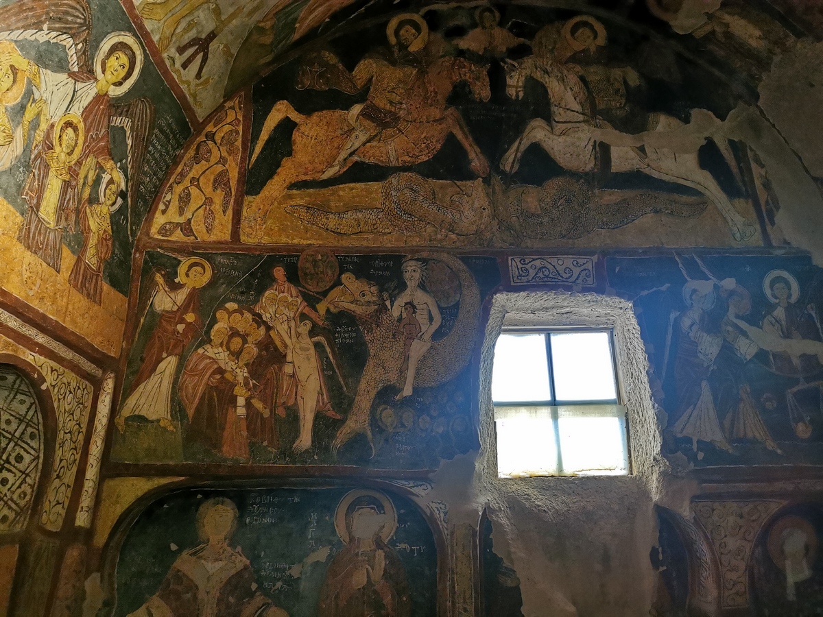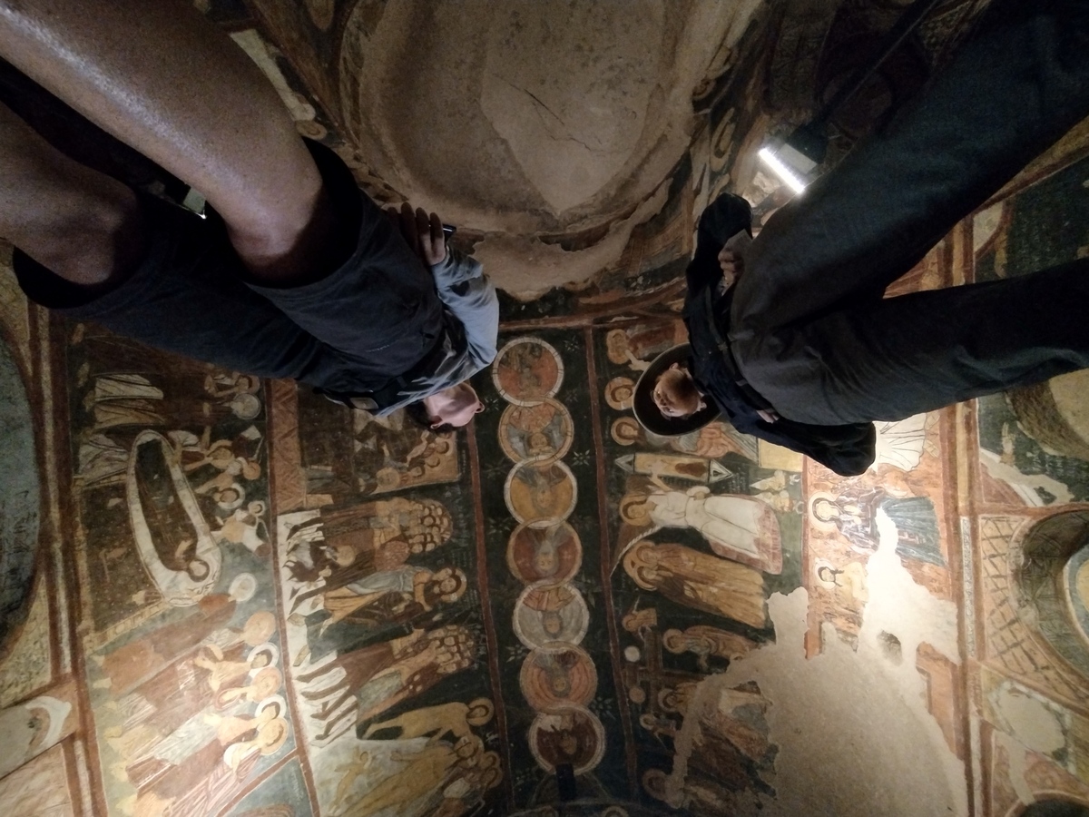 Bevor der Museumswärter am nächsten Tag die Kirche aufsperrte, hatten wir unsere sieben Sachen bereits zusammengepackt und konnten dann vor unserem Aufbruch die byzantinischen Fresken aus dem Jahr 1212 bewundern, wie es vor uns bereits Angela Merkel getan hatten, was durch ein Beweisfoto am Tickethäuschen belegt wurde. Unsere ehemalige Kanzlerin ist den meisten Türken sowieso ein Begriff und unsere kläglichen Versuche zu erklären, dass Angela Merkel jetzt Olaf Scholz heißt wurden meistens nur mit Stirnrunzeln gekontert. Für die Türken bleibt sie wohl die ewige Kanzlerin.