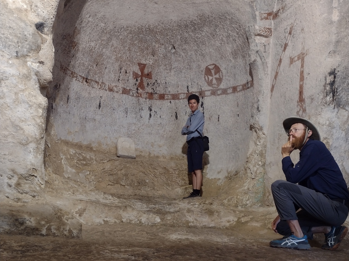 In dieser in Fels gehauene zweistöckigen Kirche sind noch einige der alten Fresken erhalten bzw. restauriert, weshalb sie ohnehin auf unserem Sightseeing-Programm stand. Als wir dort ankamen, waren die Vorhänge des Ticketbüros bereits zugezogen. Das kleine Gelände um die Felsenkirche herum war allerdings gut gepflegt, es gab einen Wasserhahn und einen Tisch und solche Infrastruktur doch sehr schätzen, erlaubten wir uns die kleine Dreistigkeit auf dem Museumsgelände unser Lager aufzuschlagen. Wir gehen mittlerweile sowieso davon aus, dass sich kein Türke daran anstößt, wo wir unser Zelt hinstellen. Im Gegenteil, wir werden eher noch zum Essen eingeladen. Allerdings wurden wir an diesem Abend tatsächlich einmal nicht entdeckt und waren froh selbst zu kochen, unsere Ruhe zu haben und mal ganz ohne Google-Translator sprechen zu können.