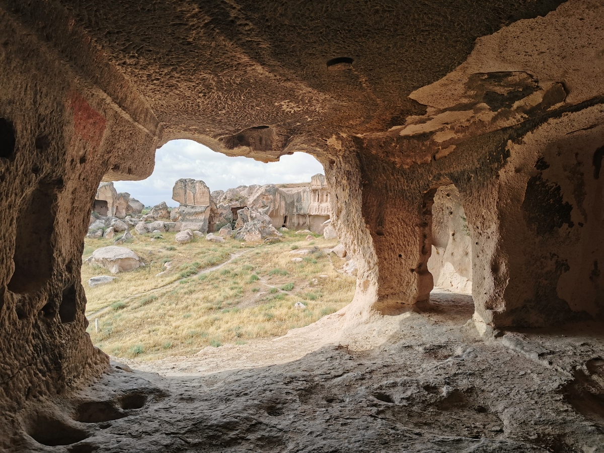 Da wir jetzt in Kappadokien waren jagte natürlich eine Sehenswürdigkeit die andere, nach nur wenigen Kilometern Fahrt besichtigten wir die Felsenstadt Asiksaray, ein weitläufiger Komplex von in die Tuff-Felsen gehauenen Kirchen und riesigen Räumen, die mit Gängen verbunden sind. Der altertümliche Ort schmiegt sich in ein grünes Flusstal und auch ein bizarrer pilsförmiger Felsen ist dort zu finden, eine Foto-Muss für jeden Kappadokien-Besucher. Voller Entdeckerdrang durchstreiften wir das mystische Gelände, auch hier hatte sich außer uns keine Menschenseele hin verirrt. Wie so oft in den nächsten Tagen fragten wir uns, warum hier in Kappadokien nicht Star Wars, Game of Thrones, Lord of the Rings und alle sonstigen Fantasy- und Science Fiction-Filme gedreht wurden bzw. warum überhaupt gar kein international bekannter Film hier gedreht wurde.