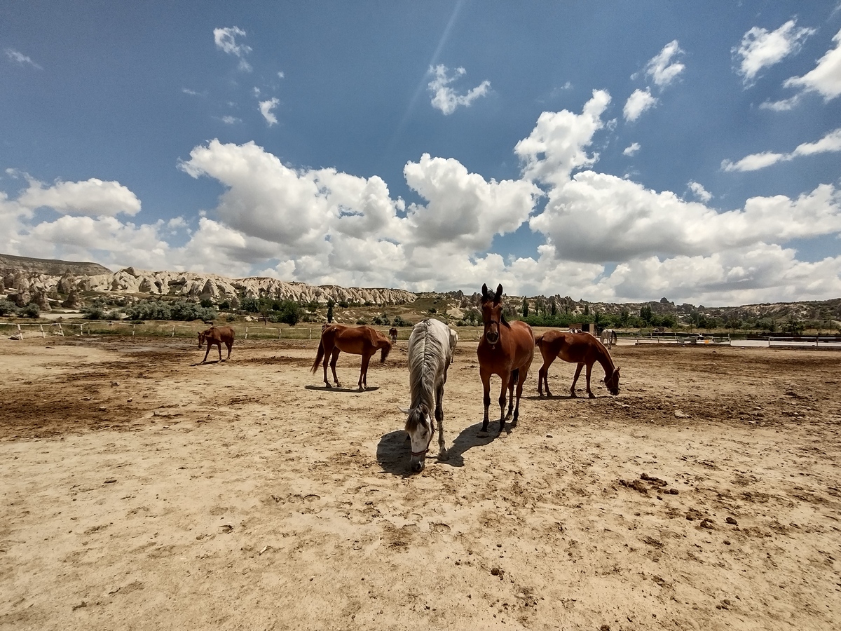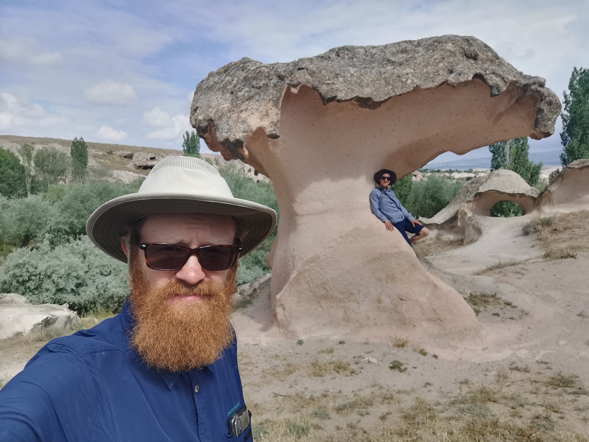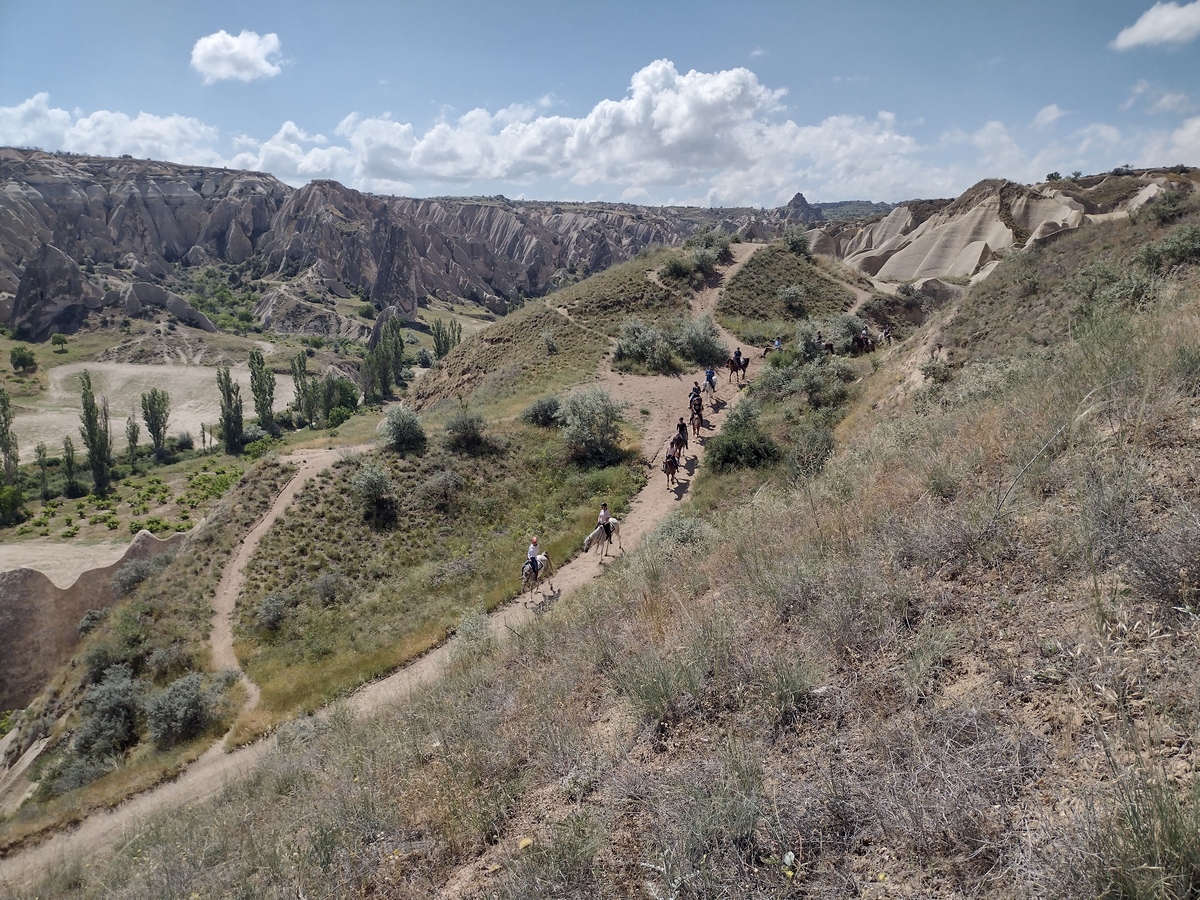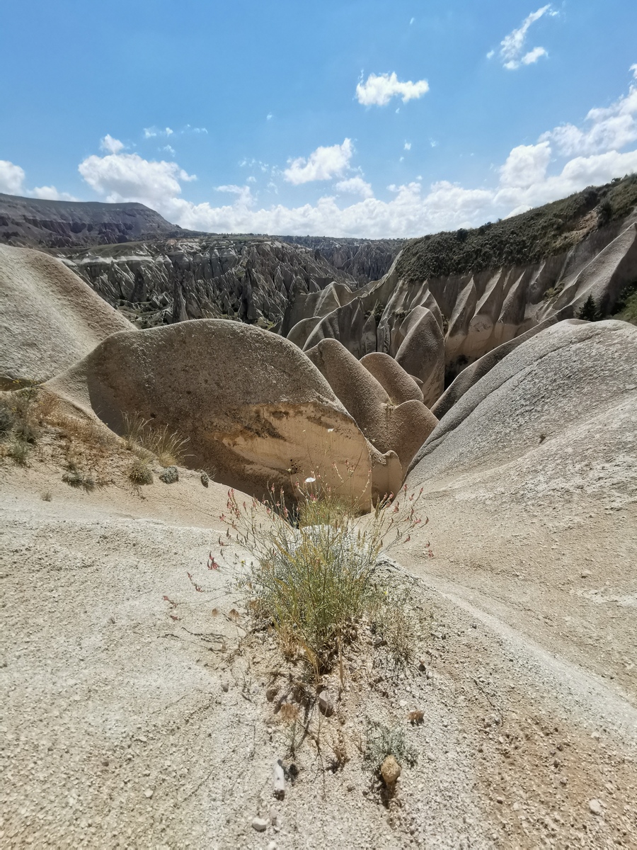 Besonders gut hat uns das durch den ganzen Tourismus inzwischen einfach allgemein als „Love-Valley“ bezeichnete Tal gefallen. Die dort vorzufindenden Gesteinsformationen erinnern mit ihren kerzengerade empor stehenden Schaften, die von Hauben gekrönt sind tatsächlich sehr klar an Phallus-Symbole und wir konnten uns nicht entblöden diese Szenerie, wahrscheinlich wie abertausende Touristen vor uns, in entsprechenden Posen abzulichten. Spaziert man in den Tälern in Kappadokien herum, ist man die meiste Zeit für sich und wir nur sehr sporadisch von einem Reiter-Trupp überholt oder einer Quad-Gang gestört.