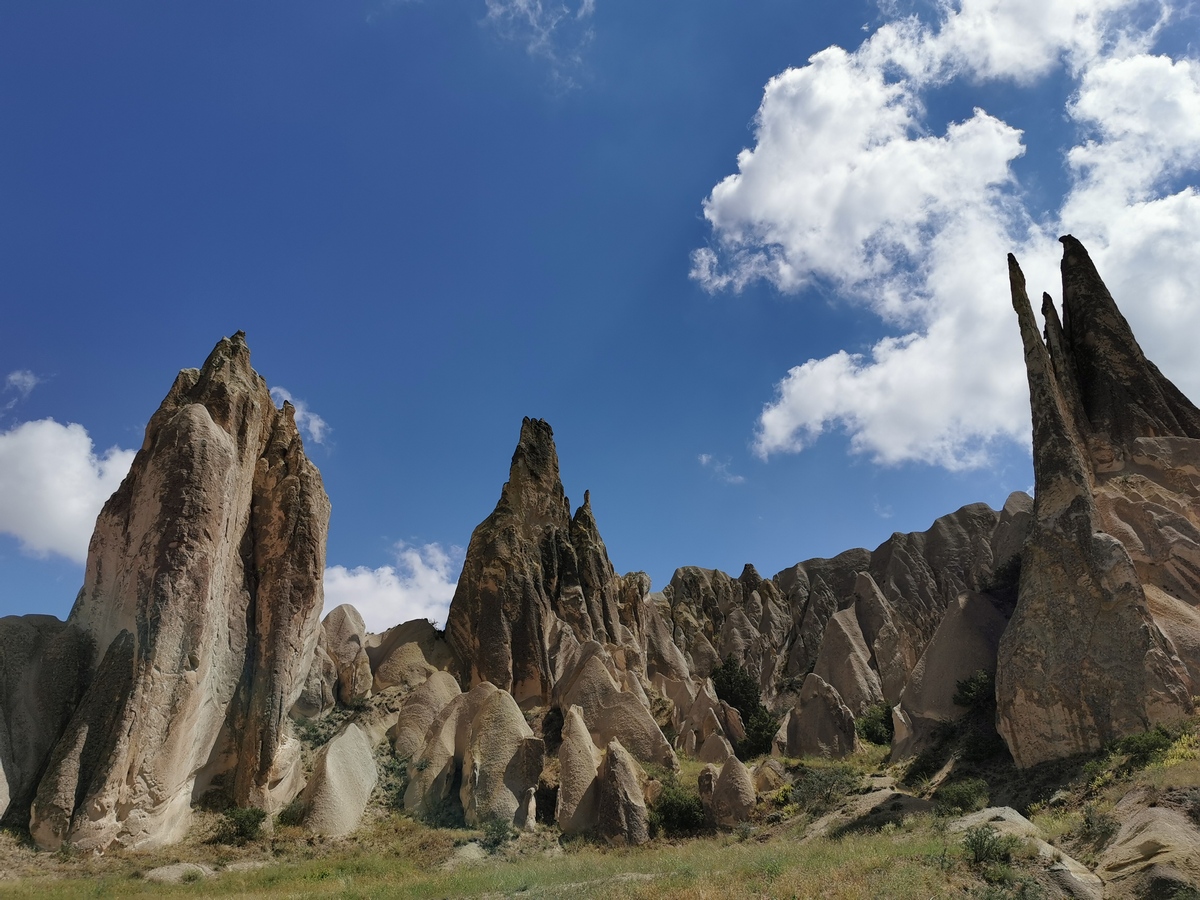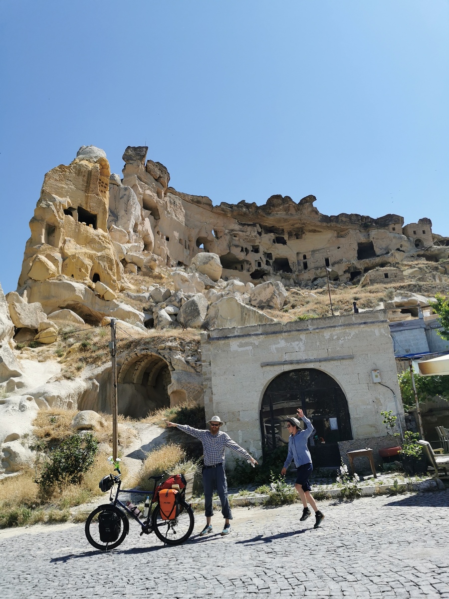 Die nächsten Tage auf dem Campingplatz waren gefüllt mit gegenseitigen Reiseberichten und Erfahrungsaustausch, denn hier war ein Schmelztiegel von Travellern. Wir lernten Reisende aus Deutschland, der Schweiz, Frankreich und den Niederlanden kennen, viele waren mit Motorrädern unterwegs oder mit dem Auto, einige reisten quer durch die Türkei, andere wollten ebenfalls weiter in den Iran. Uns Radreisenden wurde viel Respekt gezollt und auch wir blicken mittlerweile mit einigem Stolz auf die von uns zurückgelegte Strecke, auch wenn es sich für uns jeden Tag nach wie vor sehr normal anfühlt Fahrrad zu fahren. Das Städtchen Göreme bildet den Mittelpunkt des Nationalparks in Kappadokien und wir konnten zu Fuß einige Highlights der Umgebung erkunden. Die Felsformationen die sich hier aus dem Tuffstein, den zum ganz überwiegenden Teil der Vulkan Erciyes (3.917 m) hier abgelagert hat, herausgebildet haben sind nicht nur faszinierend, lustig und wunderschön, sie sehen auch in jedem Tal ein bisschen anders aus.