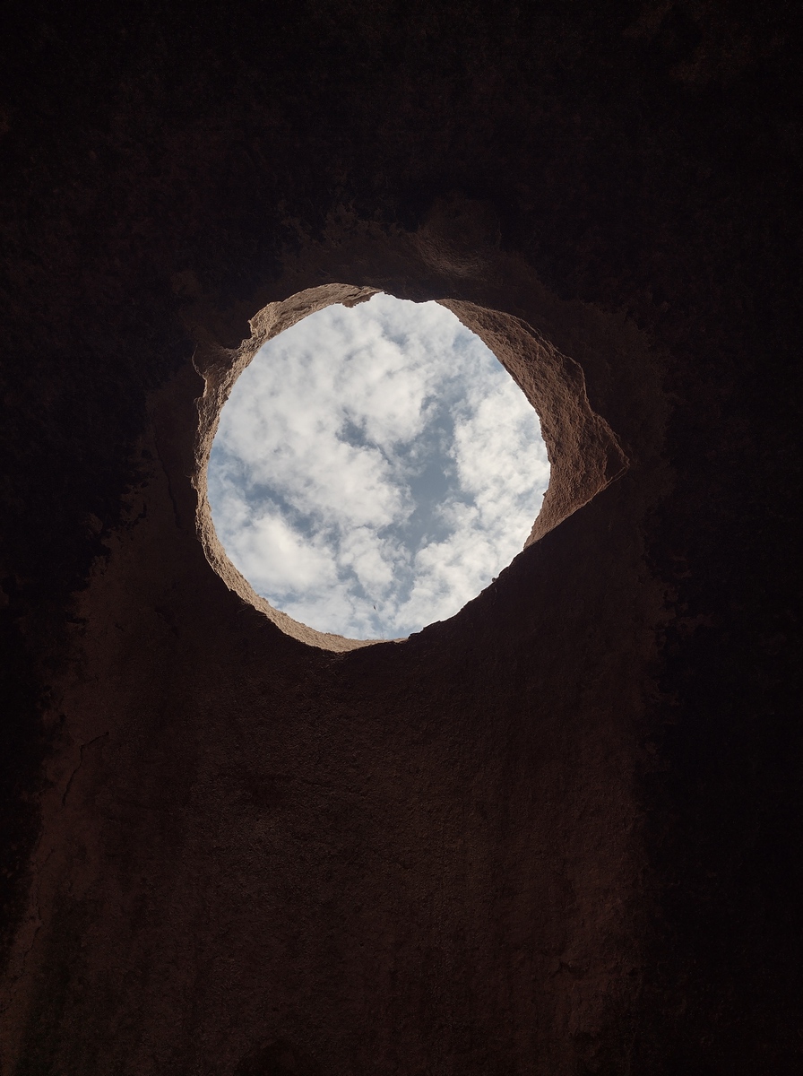 Am zweiten Tag hatte uns der Regen auch in Kappadokien eingeholt und so fuhren wir mit einem Pärchen aus der Schweiz die unterirdische Stadt Derinkuyu besichtigen. Da diese rund 30 km südlich von Nevsehir liegt, waren wir froh, dass die beiden uns in ihrem Landrover mitnahmen. Derinkuyu ist die bekannteste und gleichzeitig die größte der Öffentlichkeit zugängliche Untergrundstadt in Kappadokien. Der Besuch war verrückt. Die Stadt war und ist ein Labyrinth aus unzähligen Tunneln und kleineren und größeren Kammern. Einige sind so niedrig, dass man auf allen Vieren hindurch krabbeln muss. Es geht ständig rauf und runter, links und rechts und um Kurven, sodass man in kürzester Zeit vollkommen die Orientierung verliert. Zwar soll sich der Komplex eigentlich in Stockwerke untergliedern, aufgrund einer Vielzahl von Zwischenebenen und sehr unterschiedlichen Distanzen zwischen diesen, ist es kaum möglich nachzuvollziehen auf welchem Level man sich befindet. Klaustrophobischen Menschen sei dringend von einem Besuch abgeraten, aber die Szenerie ist eigentlich für jedermann als Kulisse für einen Albtraum geeignet.
