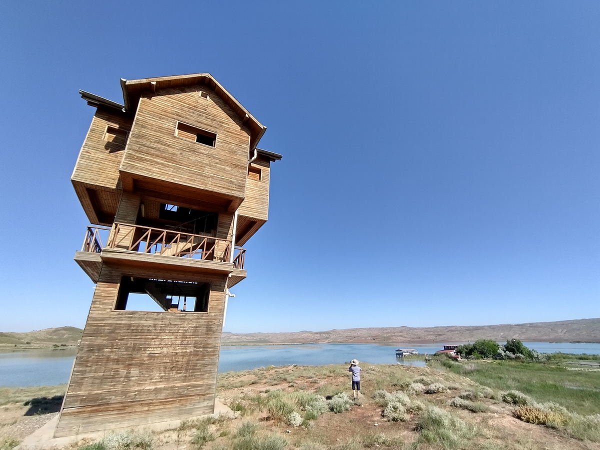 Auch die drei Tankstellen, die wir nach 95 km passiert hatten, hatten allesamt in der Gegenrichtung gelegen, sodass aufgrund der baulichen Fahrtrichtungstrennung auch hier keine Mußestunde eingelegt werden konnte. Am Horizont der schnurgeraden Straße, die nach links mit Weizenfeldern und nach rechts mit der immer gleich aussehenden Hügelkette gesäumt war, meinte Julia zwar manchmal Tankstellen zu erahnen und träumte von Kola Coca Cola, doch beim langsamen Näherkommen waren es nur verlassene Häuser, in denen nur noch Vögel lebten.