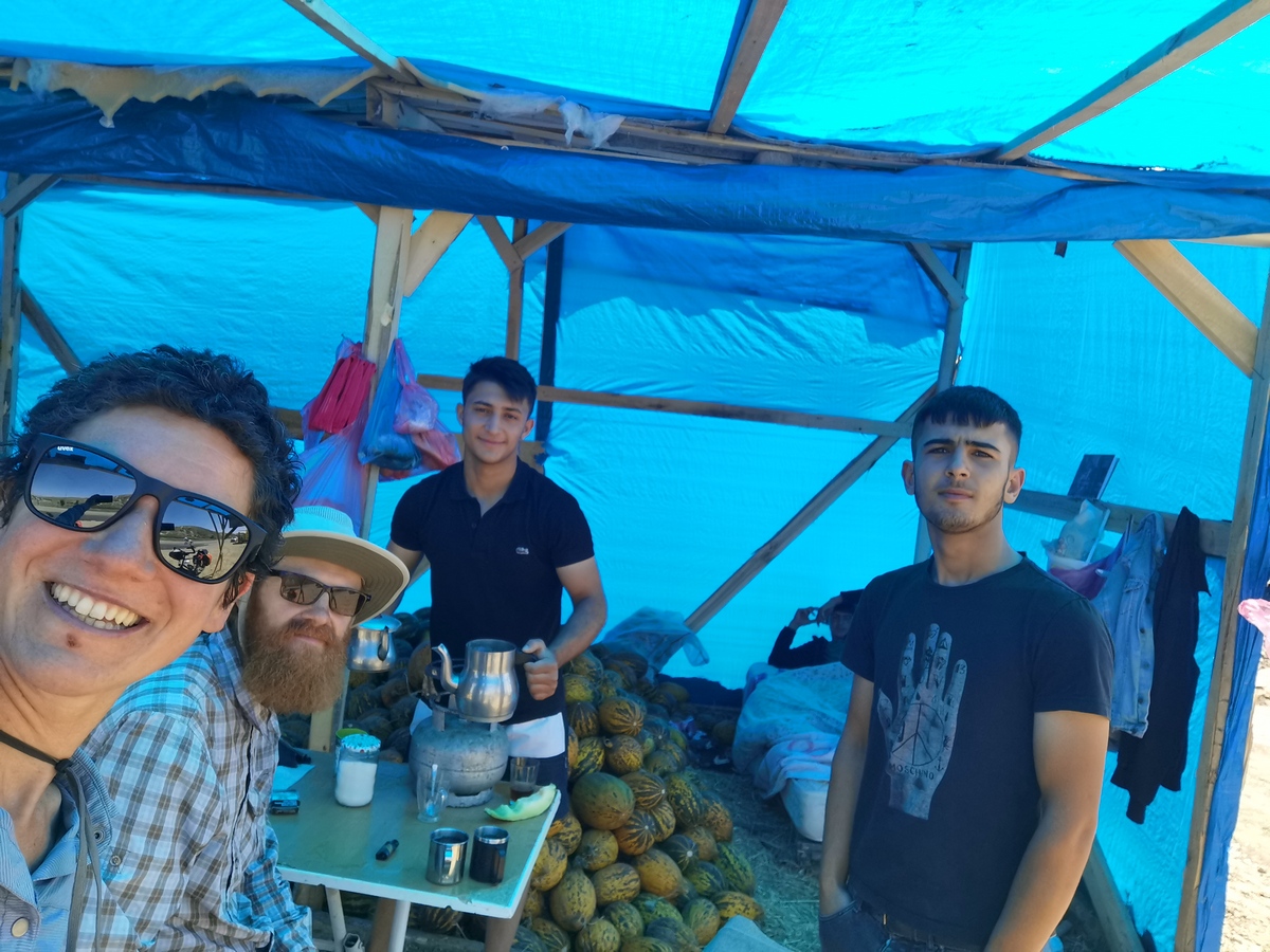 Inzwischen waren wir wieder in intensivem Austausch mit Kathrin, die zwei Tage vor uns aus Kappadokien aufgebrochen war, allerdings noch einen Abstecher in die Kemaliye-Schlucht gemacht hatte. Wen interessiert was sie dort erlebt hat, kann dies auf ihrem Blog nachlesen. Nun war sie einige Kilometer hinter uns und wollte zu uns stoßen. Schnell hatten wir ein schönes Plätzchen zwischen Erdbeerfeldern, Acker und einem kleinen Fluss gefunden und als wir nach ca. einer dreiviertel Stunde in der Nähe einen Lkw hupen hörten, wussten wir das Kathrin in wenigen Augenblicken ankommen würde.