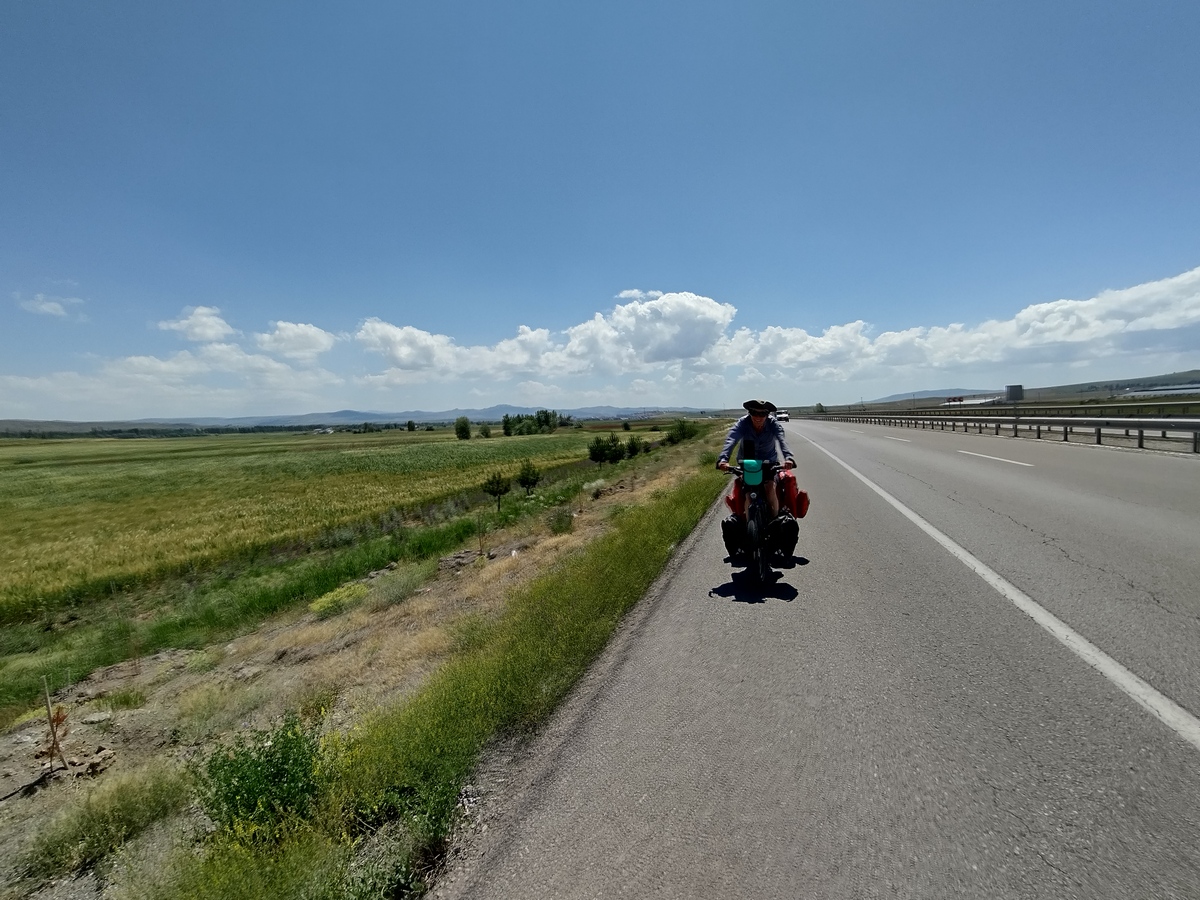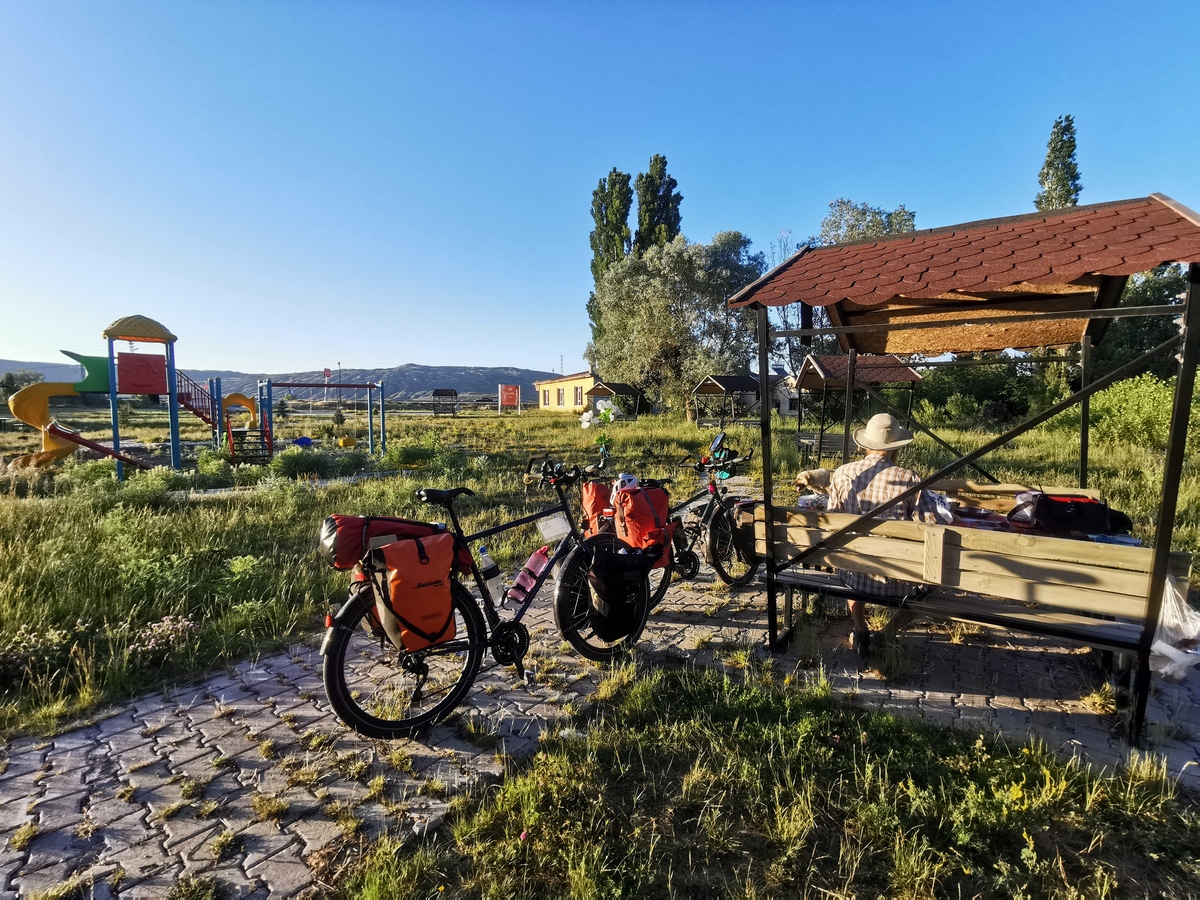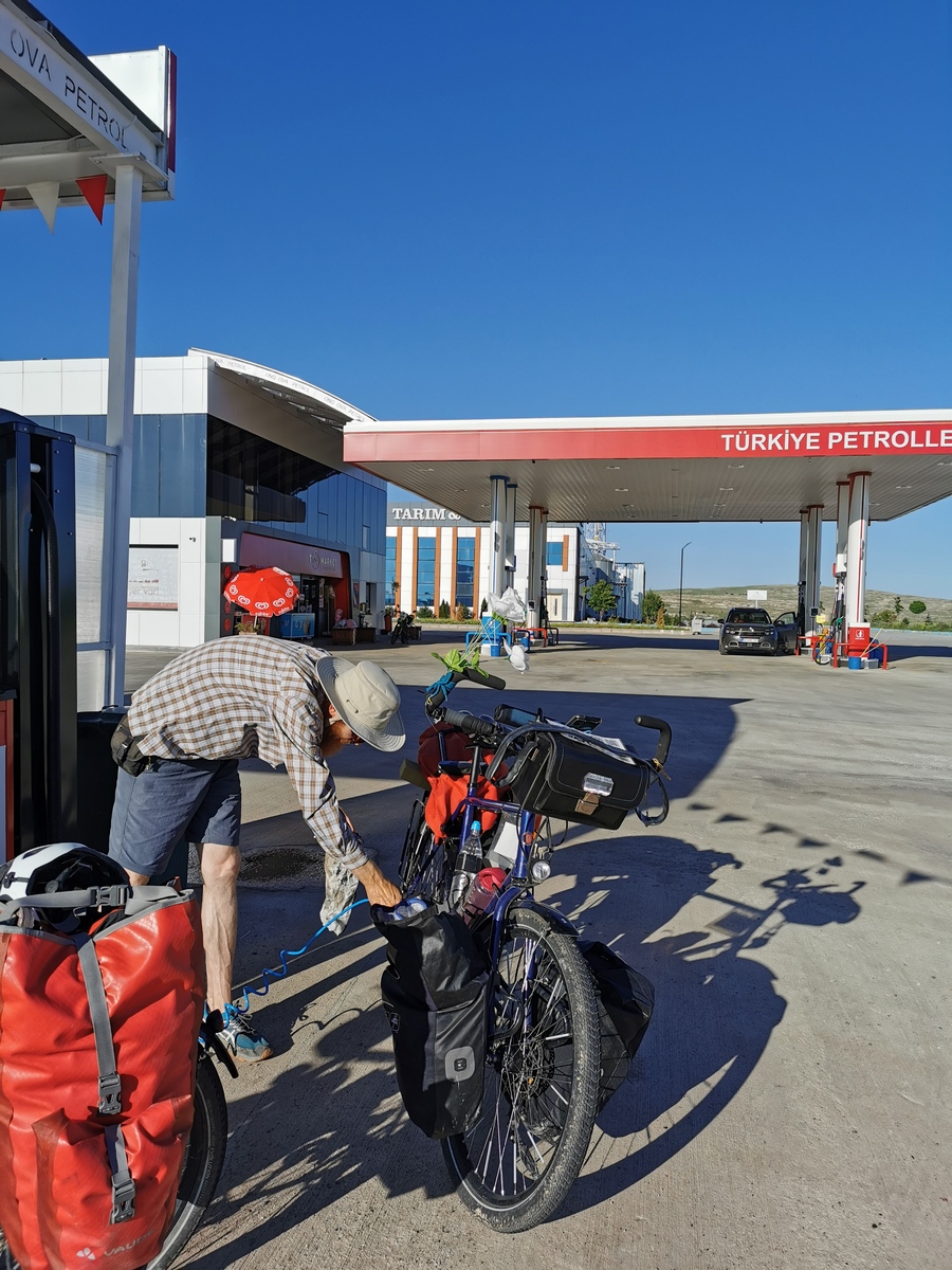 Während wir darüber stritten, ob wir bei dem gekochten Maiskolben, den wir gerade an einem Straßenstand erworben hatten, zu viel gezahlt hatten (erster Ehestreit), fuhren wir weiter und verließen die Stadt, um weiter auf der D-200 bzw. der Europastraße 88 entlang zu fahren, die wir an diesem Tag nicht mehr verlassen sollten. Die Fahrt auf der neuen Straßen zog sich wie frischer Teer und selbst die Fahrradpflege an einer Tankstelle war eine willkommene Abwechslung. Unser Nachtlager schlugen wir auf einem verlassenen Picknick-Platz nahe der Autobahn am Ufer des Kızılırmak.