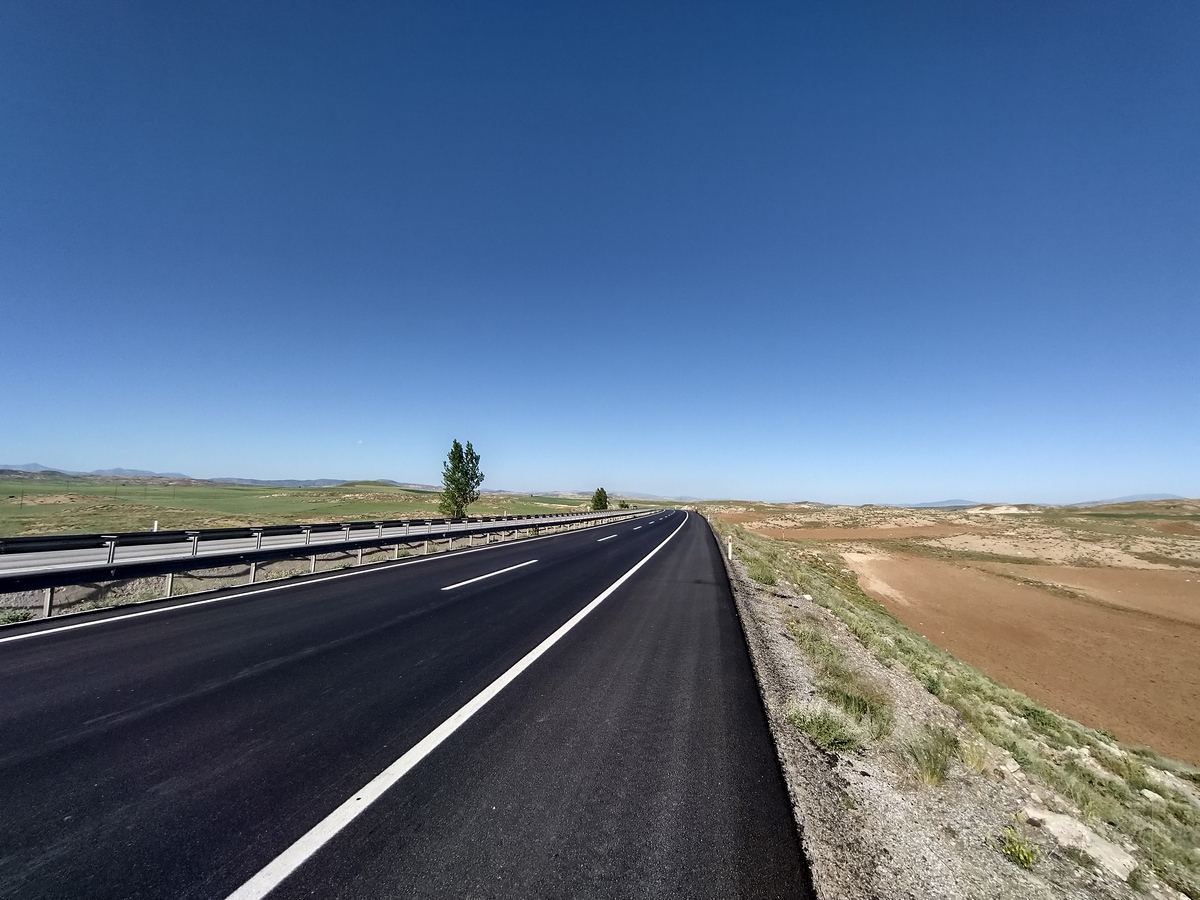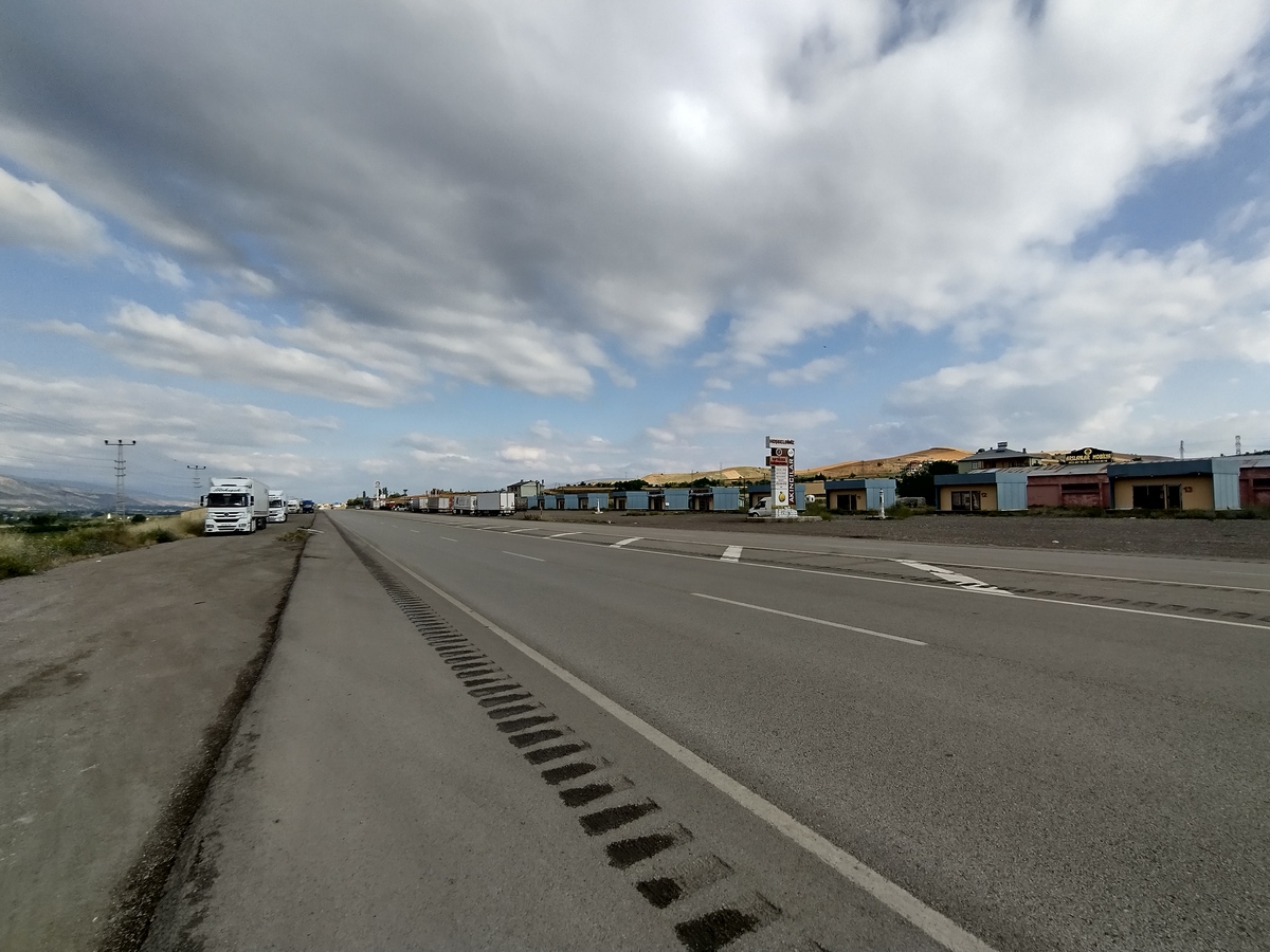 Der nächste Tag begann, was die Qualität der Straße anbetraf, mit einer mittelschweren Katastrophe. Nachdem wir erst einen Weg fahren wollten, der nicht befahrbar war und dann auf einen 15 km Feldweg in katastrophalem Zustand (der eigentlich ein Flussbett war) auswichen, waren wir sicher, dass wir unser von vorne herein als unrealistisch eingestuftes Tagesziel Sivas (Gesamtdistanz ca. 130 km) wohl nicht mehr erreichen würden. Hätten wir die Einladung auf Kaffee und Elektrizität von dem uns längere Zeit verfolgenden Renault-12-Kombi-Fahrers mit Verbindungen nach Mannheim angenommen, wäre diese Vermutung zur Sicherheit geworden. Als er jedoch, uns den Weg weisend nach links abbog, nahmen wir den rechten Abzweig nach Yenicuhuk, winkten nur freundlich zum Abschied und lenkten die auf D-260 ein. Dort kamen wir in rasantem Tempo vorwärts, was neben dem guten Ausbauzustand und dem moderaten Höhenprofil auch daran lag, dass es keinen Rastplatz und keine Ortschaft gab, wo wir hätten eine Pause einlegen können.