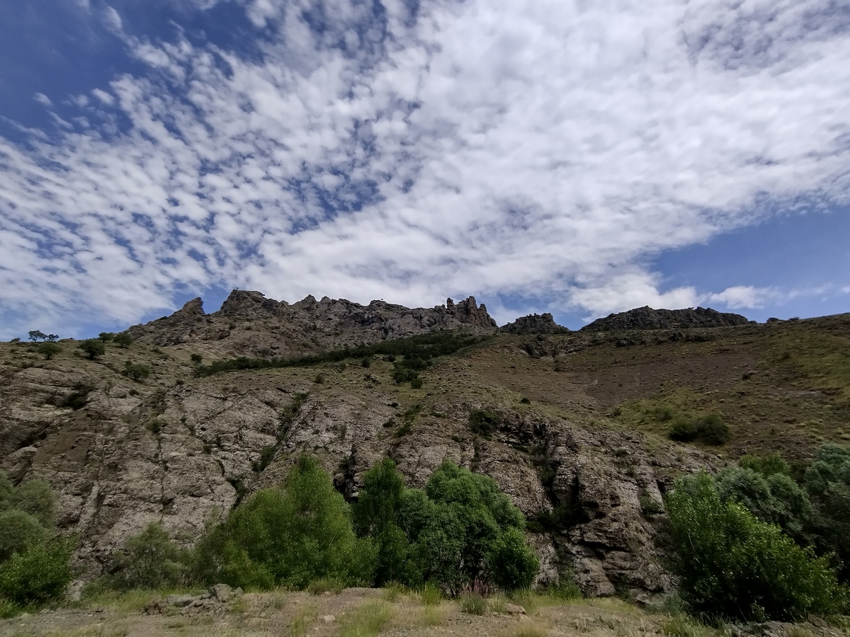 Das wunderschöne Tal schlängelte sich noch eine ganze Weile durch die Landschaft und gegen Ende mussten wir nochmal ordentlich Höhenmeter kloppen, bis wir schließlich auf einer Hochebene landeten, die in Wiesen und Nadelhölzern darlag. Mittlerweile hatten wir 90 Kilometer auf dem Buckel und die letzten 10 auf gerader Straße nach Siran waren ermüdend, sodass wir beschlossen kurz nach der Stadt ein Lager für die Nacht zu suchen.