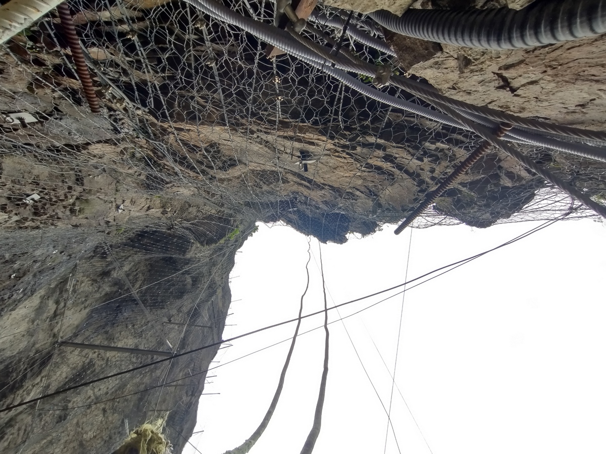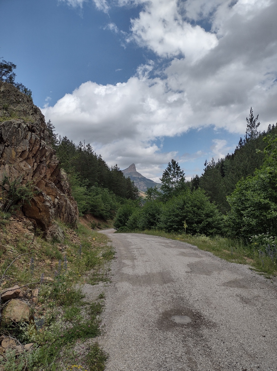 So arbeiteten wir uns jeder für sich die knapp 1.000 Höhenmeter hinauf und am Scheitelpunkt in 1840 Meter Höhe empfing uns ein düsterer Tunnel, der uns jedoch vor der Erklimmung des Gipfels bewahrte. Da Komoot keine Tunnel kennt, waren wir von einem noch viel dramatischeren Anstieg ausgegangen. Während Julia bald wieder zu Tilmann aufgeschlossen hatte, blieb Kathrin weit hinter uns beiden zurück und so machten wir uns zu zweit an die Abfahrt.