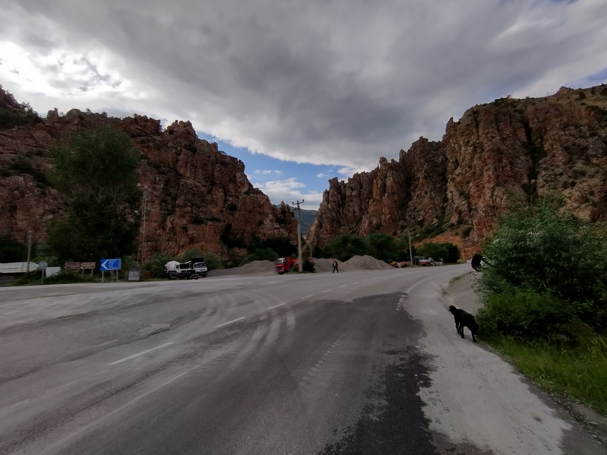 Die Weiterfahrt bis nach Torul verlief angenehm bergab und war auch ohne Wildnis-Abenteuer interessant, denn der Weg war weiterhin gesäumt von faszinierenden Felssteilwänden. In Torul, das spektakulär von Felsen eingerahmt ist, wurden wir schließlich von Kathrin eingeholt und machten uns nach dem Erwerb einer Gasflasche und einem (wie sich später mal wieder herausstellen sollte unnötigen) Lebensmitteleinkaufen an die Schlafplatzsuche. Im Ort hatten wir einmal mehr für erhebliches Aufsehen gesorgt und waren froh als wir alle Erledigungen hinter uns hatten.