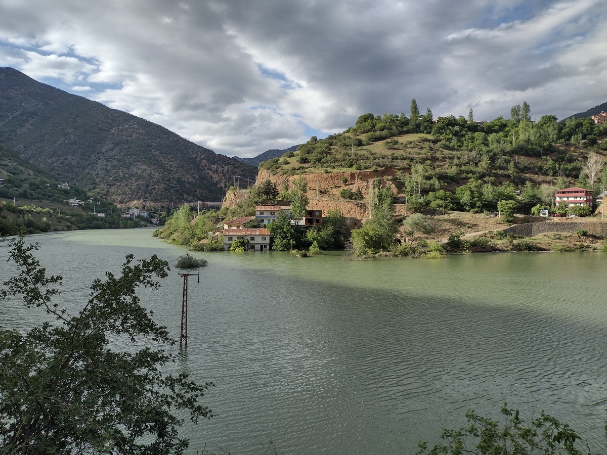 Ebenfalls herbeigerufen wurde ein Nachbar der in Schwerte lebte und gerade im Heimaturlaub war. Er konnte uns erklären, warum die Brücke nicht mehr da war: Am Grund des Stausees war ein Dorf, in dem die beiden Männer auch aufgewachsen waren und die Brücke war ebenfalls mit der Flutung des Dorfes im Jahr 2008 untergegangen. Als Ausgleich hatten die Anwohner vom Staat Entschädigungszahlungen für den Bau neuer Häuser am neuen Ufer erhalten, beide bestätigten auf unsere Nachfrage, dass der Staat sich hier sehr großzügig gezeigt hatte und es nichts zu meckern gäbe, wenngleich beide auch das alte Dorf etwas vermissten. Es stellte sich außerdem heraus, dass unser Gastgeber Filmproduzent war, der hauptsächlich Reportagen drehte und in Bulgarien einen Filmpreis für eine Dokumentation über Weihrauch bekommen hatte. Ferner erklärte uns der Herr aus Schwerte, dass er in der Türkei sofort als „Ausländer“ erkannt werden würde, auch ohne den Mund aufzumachen. Auf unsere Nachfrage hin wussten die beiden keine richtige Erklärung, es sei einfach die Aura meinte der Filmproduzent, vielleicht auch Bewegung und Gestik.