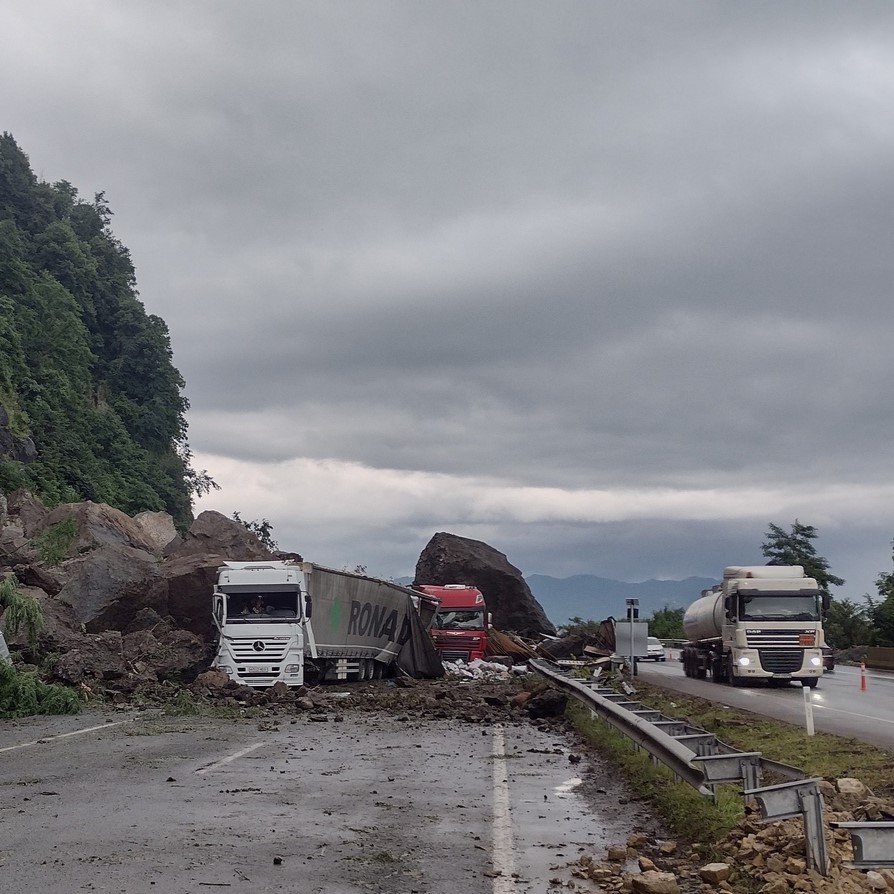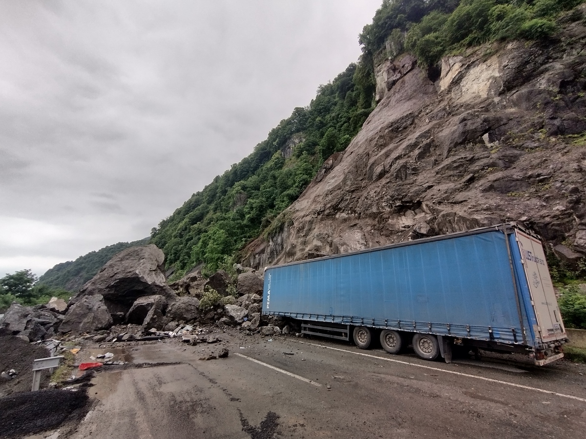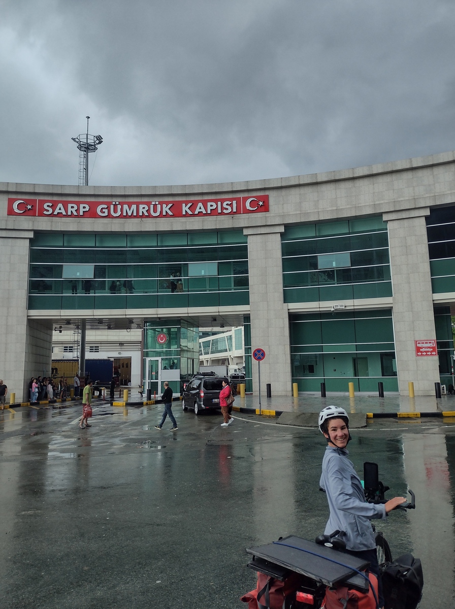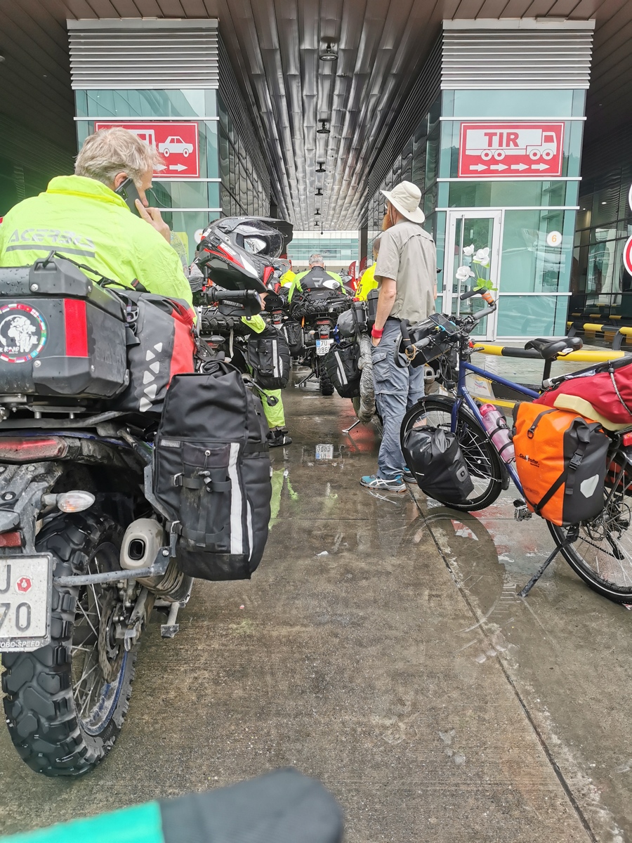 Am nächsten Tag war die Straße frei und nach nur wenigen Metern kamen wir zu besagter Unfallstelle. Nur eine Fahrbahn war geräumt und auf der anderen türmten sich riesige Felsbrocken und Geröll, die einen Lkw zerteilt und begraben hatten. Im Bewusstsein der realen Gefahr, die von diesen Steilhängen ausgeht, wollten wir diese Passage zügig hinter uns bringen. Außerdem waren wir nun nach 42 Tagen bereit der Türkei „Tesekkürler ve Güle Güle“ zu sagen. Doch diese wollte uns noch nicht gehen lassen, denn als wir vier unsere letzten Lira in Kekse investierten, fing ein Regen an, der sich zu einem heftigen Gewitter ausbaute und eine Stunde lange wahnsinnige Wassermassen vom Himmel schüttete. Nachdem wir eine Weile unter dem Vordach des Ladens ausgeharrt hatten, wechselten wir in das Café nebenan und mussten nun unseren Nescafé mit der Kreditkarte bezahlen, da die Lira ja schon weg (und die Kekse verspeist) waren. Kaum war der Kaffee da, hörte der Regen auf und so schwangen wir uns koffeeingestärkt in die Sättel und waren Schwuppdiwupp auch schon an der Grenze.