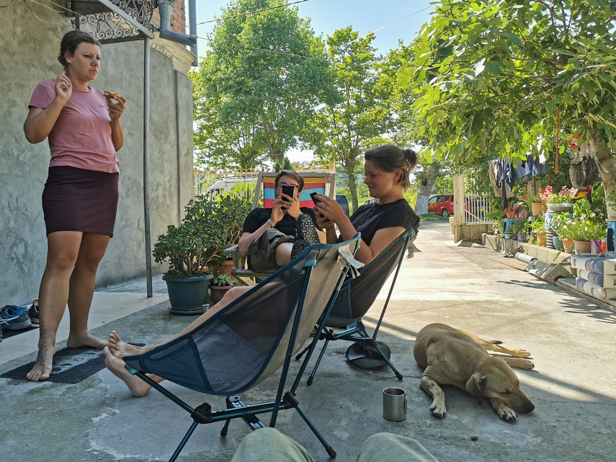 Die feierwütigen Betreiber des Campingplatzes animierten uns zum Trinken georgischen Weins und feierten eine Party mit einer Gruppe russischer Expats in der zum Platz gehörenden Bar. Wir hatten daher Gelegenheit mit zwei jungen Russinnen, die Deutsch studiert hatten zu sprechen. Sie waren quasi wegen des Krieges aus ihrem Land geflohen und waren nun als Englischlehrerinnen in Batumi tätig.