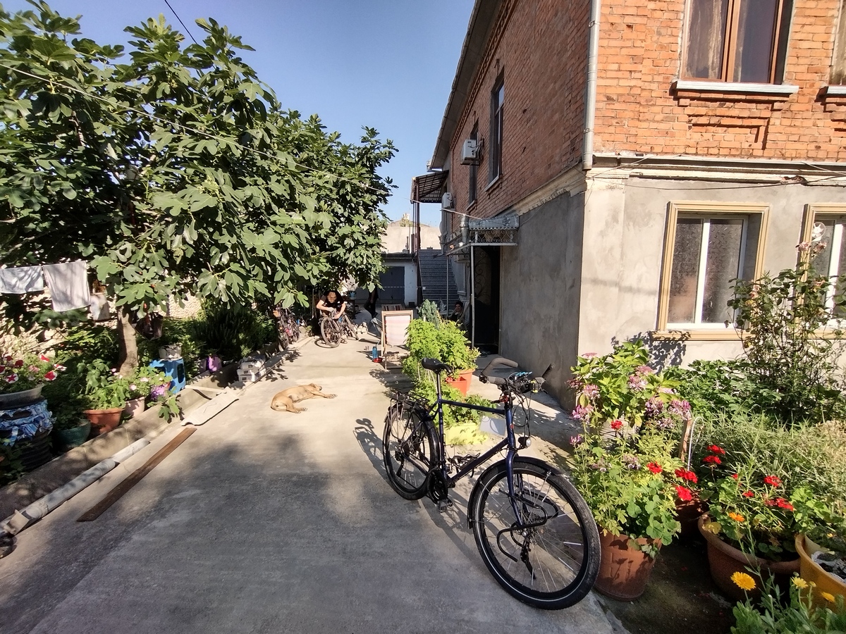 Die Polizei fuhr noch einmal mit den beiden zum Tatort, was in Deutschland freilich undenkbar gewesen wäre. Dennoch waren die Beamten ansonsten im Wesentlichen ratlos, wie nicht anders zu erwarten war. Die nun Fahrradlosen dachten an Aufgeben und Heimfliegen, denn ein neues geeignetes Fahrrad zu finden, schien hier in Georgien schwierig zu werden. Da kam uns die Idee, dass unser Schätzelein vielleicht ein Fahrrad aus Deutschland mitbringen könnte. Mit ihm und Samira, die ihren Urlaub in Georgien verbringen wollten, waren wir in knapp drei Wochen in Tiflis verabredet. Nach kurzer Bedenkzeit war Kathrin Feuer und Flamme und hatte in Nullkommanix ein Fahrrad gefunden, sich die gewünschte Komponenten dazu bestellt, mit dem Radladen ihres Vertrauens den Umbau vereinbart und mit ihrer Schwester den Transport zum Flughafen geregelt. Oli überlegte ein paar Tage länger, doch auch er wollte seine Reise fortsetzen. So wurde das Schätzelein kurzerhand von uns zum Fahrradlieferant ernannt und ihm gebührt viel Dank und Ehre für die Rettung unserer Fahrradfreunde!