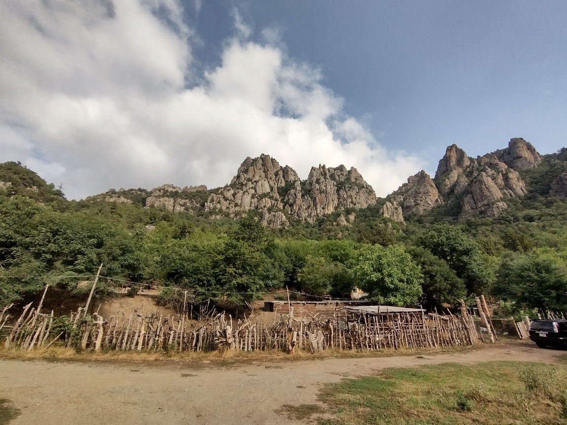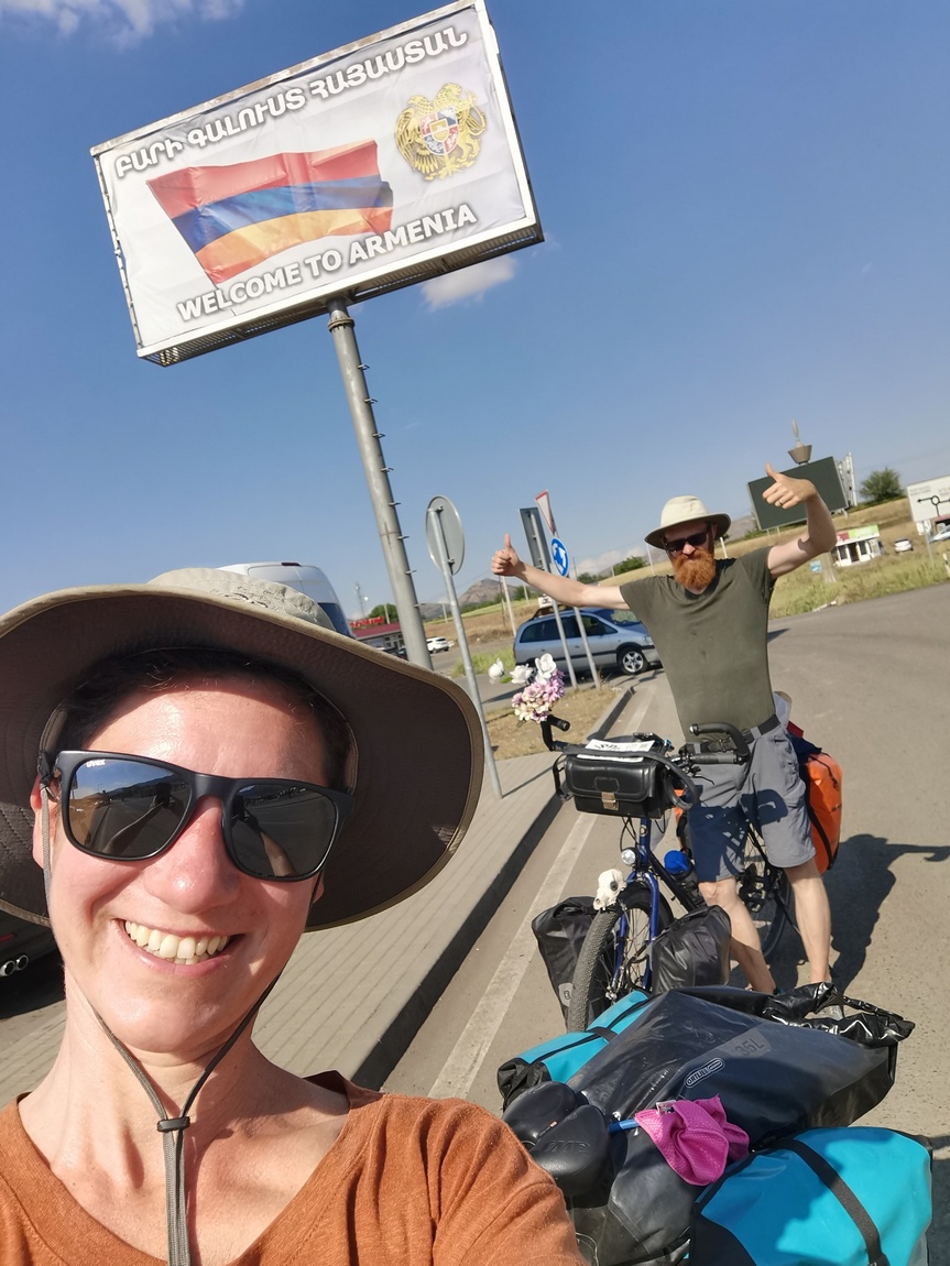 Kaum hatten wir die armenische Grenze bei Bagratashen-Sadakahlo überschritten, Geld getauscht, Sim-Karten besorgt (Hinweis an andere Reisende: Die erste wie eine Curry-Wurst-Bude aussehende Wechselstube nach der Grenze ist eine Abzocke-Bude) und uns mit zwei Motorradfahrern aus Starnberg ausgetauscht, wurde die Landschaft wieder grüner und interessanter. Auch die Menschen waren im Gegensatz zu den Georgien aufgeschlossener und winkten uns fröhlich zu, sodass wir uns ein wenig an die Türkei zurückerinnert fühlten. Trinkwasserbrunnen und kleine Läden mit Grundnahrungsmitteln (nicht nur Keksen) fanden wir in jedem Ort vor und waren somit gut versorgt.