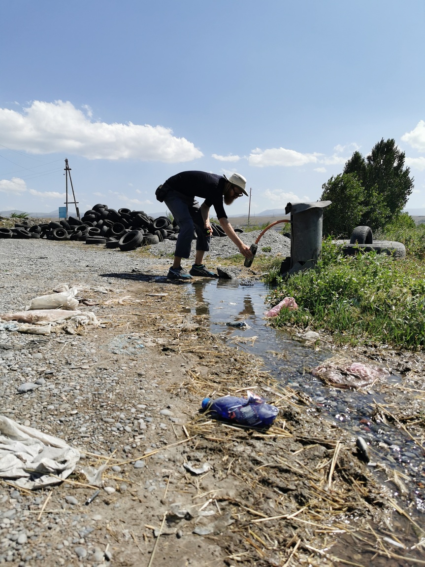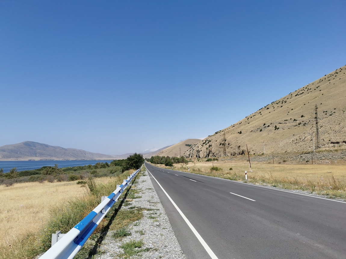 Und plötzlich lichtete sich der Nebel, die Sonne strahlte uns grell entgegen als wir uns die Straße zum Sevan See herunterstürzten. Wobei sich eigentlich nur Tilmann herunterstürzte und unten angekommen zähneknirschend feststellte, dass er sich nicht darum gekümmert hatte, die Wasservorräte aufzufüllen, obwohl wir nun zeitnah ein Lager für die Nacht aufschlagen wollten. Zunächst verwundert, warum denn Julia so lange für die Abfahrt brauchte hoffte er bald, dass das Auffüllen des Wassersackes sie aufgehalten haben möge. Seine Hoffnung bestätigte sich kurze Zeit später und er freute sich über die Besonnenheit seiner Partnerin.
