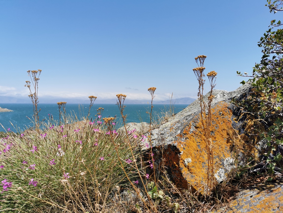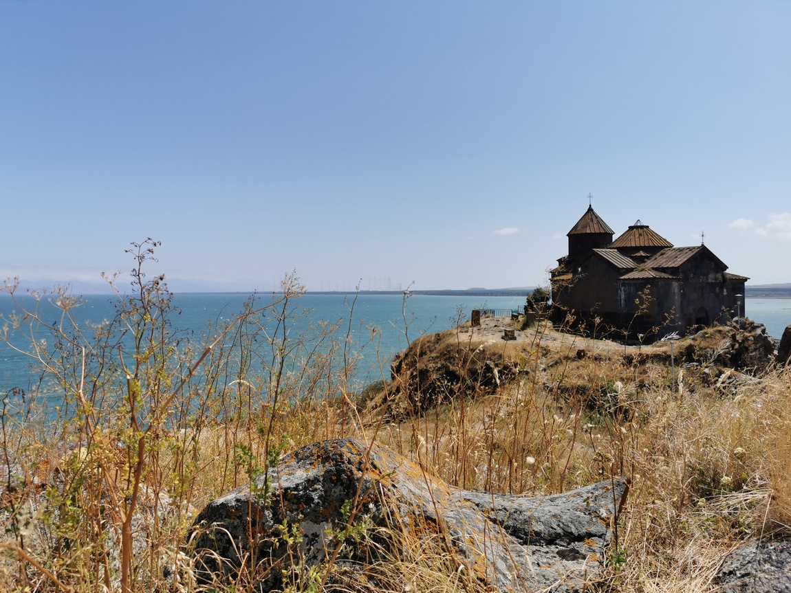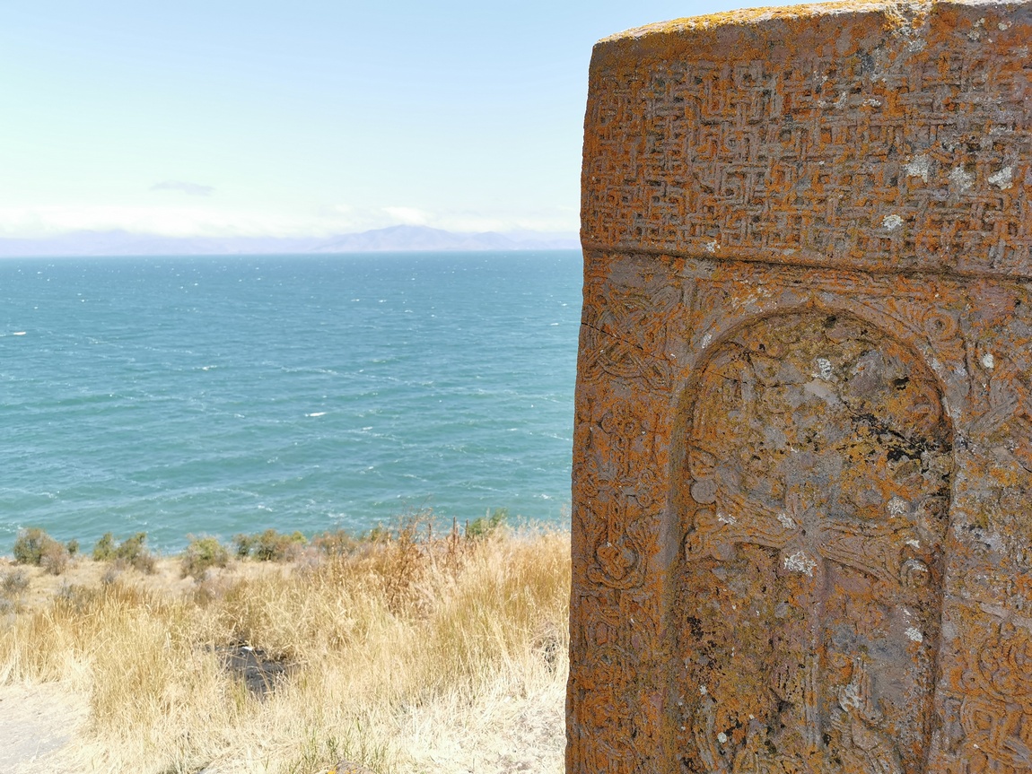 Nun hatten wir endlich das Sonnenlicht zurück, allerdings tobte auf der Landstraße, die den See umrundet ein kräftiger Wind, dem wir nun versuchen wollten zu entkommen. Da ein vielversprechender kleiner Weg Richtung Ufer führte, versuchten wir gleich hier unser Glück und fanden einen traumhaften Wildzeltplatz auf einer kleinen versteckten Wiese, der zudem einigermaßen Schutz vor dem Wind bot. Der Sevan See ist der größte natürliche See im Kaukasus und liegt auf 1.900 Meter. Dementsprechend kühl ist es dort auch im Sommer. Die frischen Brise sollte uns zu unserm Leidwesen auch in den nächsten Tagen erhalten bleiben (am Wetter haben wir eigentlich immer etwas auszusetzen).