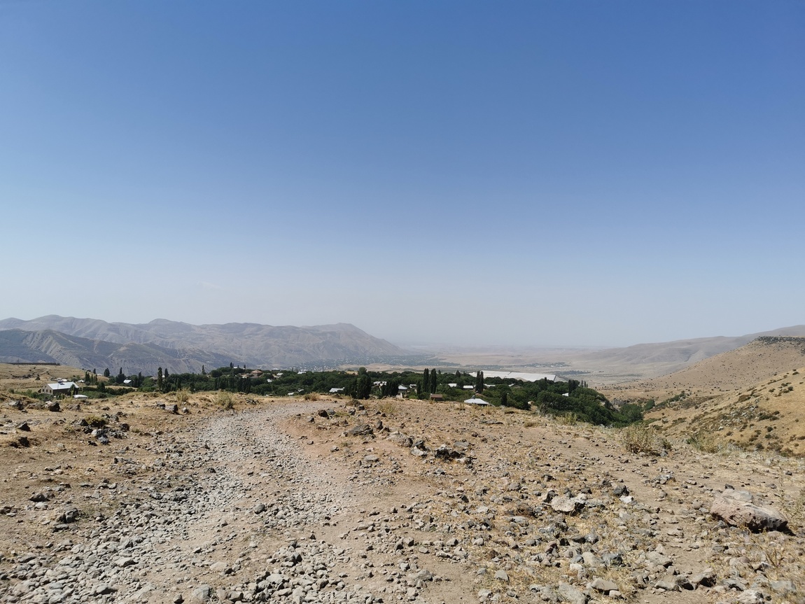Als wäre es noch nicht genug, dass wir nun noch nicht einmal die Abfahrt genießen konnten, wurde es nun Schritt um Schritt heißer, denn nicht nur schritt die Stunde voran, auch rückte das Tal gemächlich tiefer und tiefer. Man kann es nicht anders sagen, der Abstieg war die reinste Tortur, wir schleppten uns nur noch vorwärts und ließen die Räder gelegentlich einfach kurz rollen, damit sie uns hinter sich herzögen. Als wir am Mittag im Ort Geghard ankamen, zurück in der Zivilisation waren und endlich wieder Asphalt unter den Füßen hatten, hatten wir die Räder die 1.460 Höhenmeter tatsächlich zu einem großen Teil herabgeschoben. Wobei schieben natürlich gar nicht der richtige Ausdruck ist, da unsere Bemühungen durch ziehen, bremsen und lenken dem Verhindern eines unkontrollierten Abgangs der Räder galten.