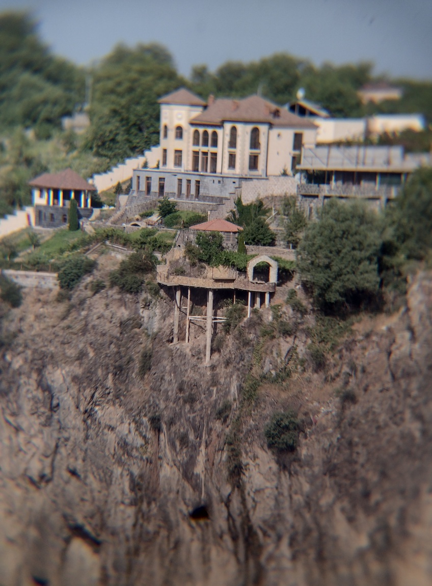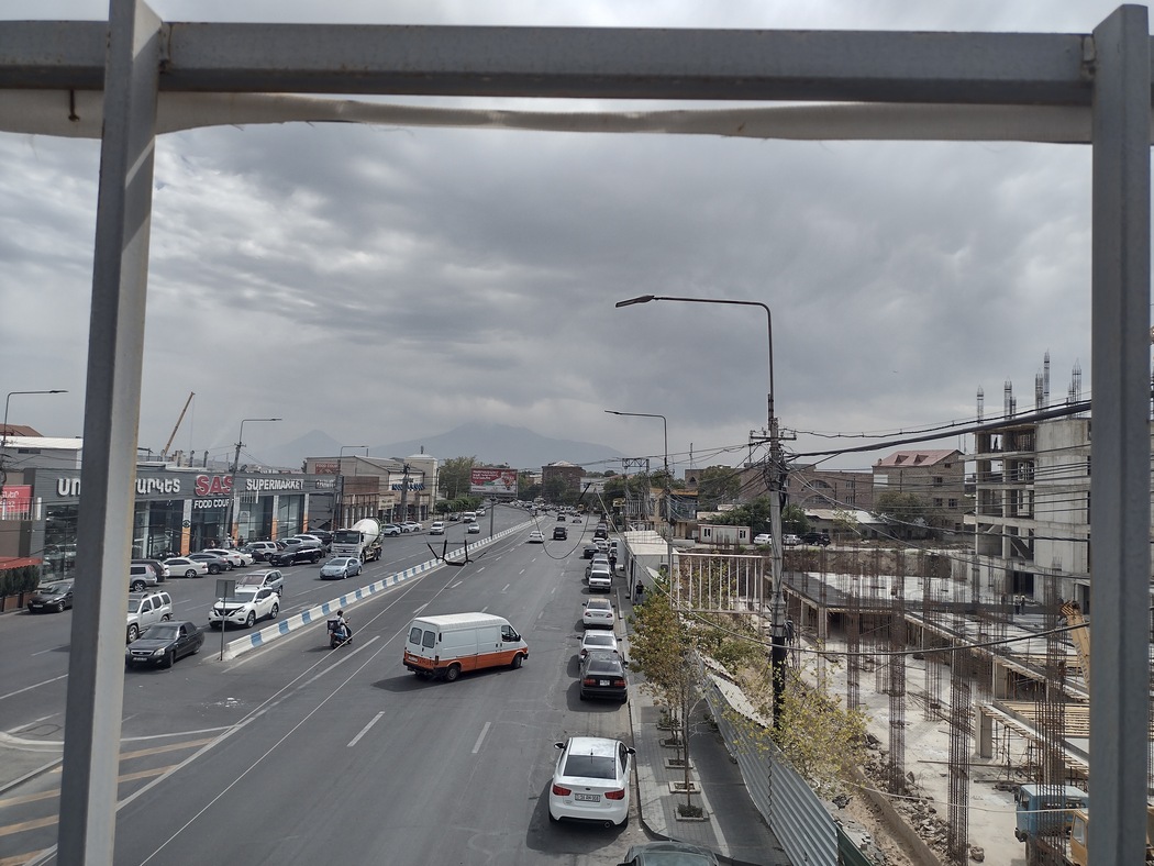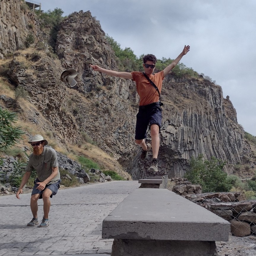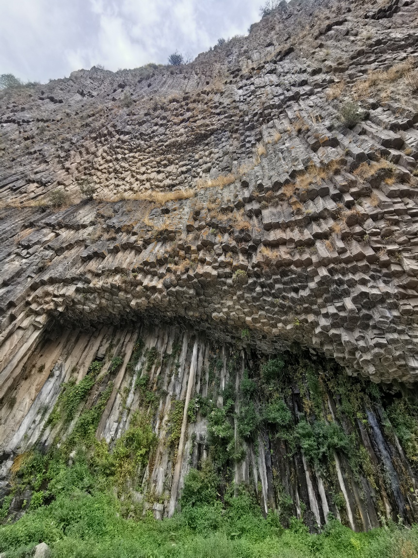 Viel spektakulärer als der Tempel, der vor allem aufgrund seiner Lage an einem Canyon beeindruckt, sind allerdings die Basalt-Felsen, die große Teile der Sole eben jenes Canyon bilden. Um eine Basaltsäule hätten wir diese nicht besucht, weil ihr Zugang nicht ausgeschildert und auch schwer zugänglich war. Froh, diese Felsen nun auch von nahem gesehen zu haben, wollten wir jetzt in die armenische Hauptstadt. Auf dem Weg dorthin konnten wir in der Ferne den Ararat durch eine dichte Dunstschicht sehen, der Fotolinse blieb dies aber verborgen.