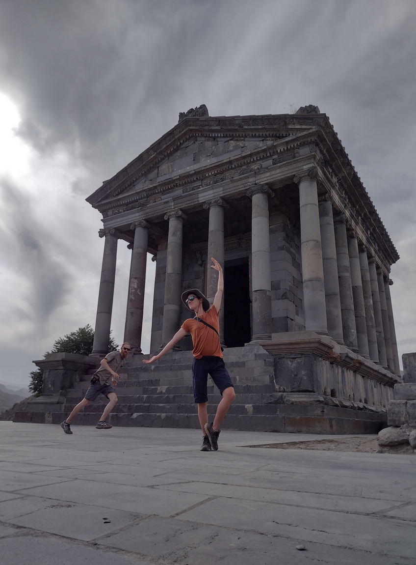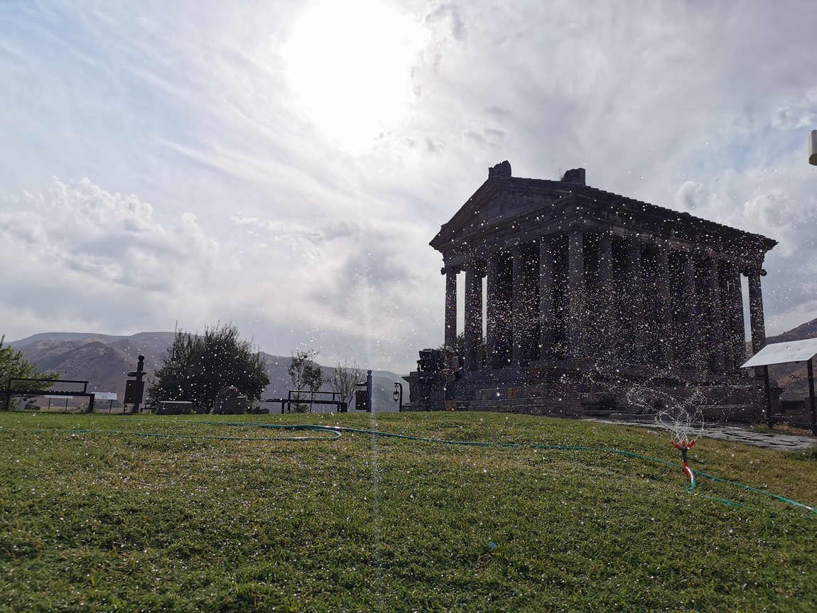 Nun brachen wir früh morgens auf und waren noch vor allen anderen am viel angepriesenen Garni Tempel. Vor allen anderen bedeutete in diesem Fall auch vor der offiziellen Öffnung. Anstatt uns einfach reinzulassen und beim Verlassen das Eintrittsgeld zu hinterlassen, bestand die Servicekraft am Kassenhäuschen jedoch darauf zunächst einmal die Kassenbestände durch einzelnes abzählen der Münzberge zu erfassen, was etliche Minuten in Anspruch nahm.