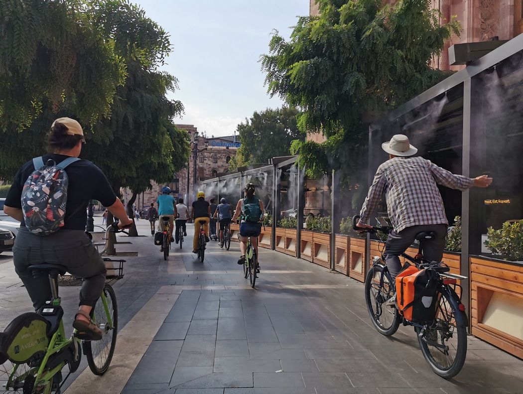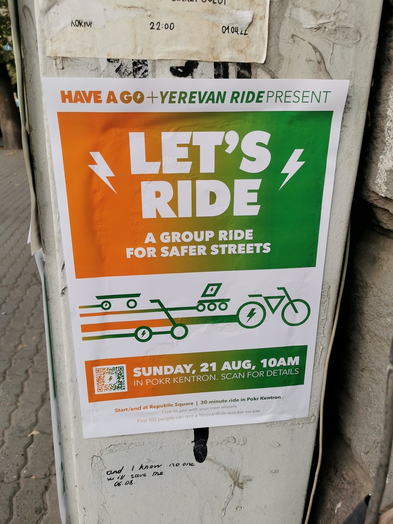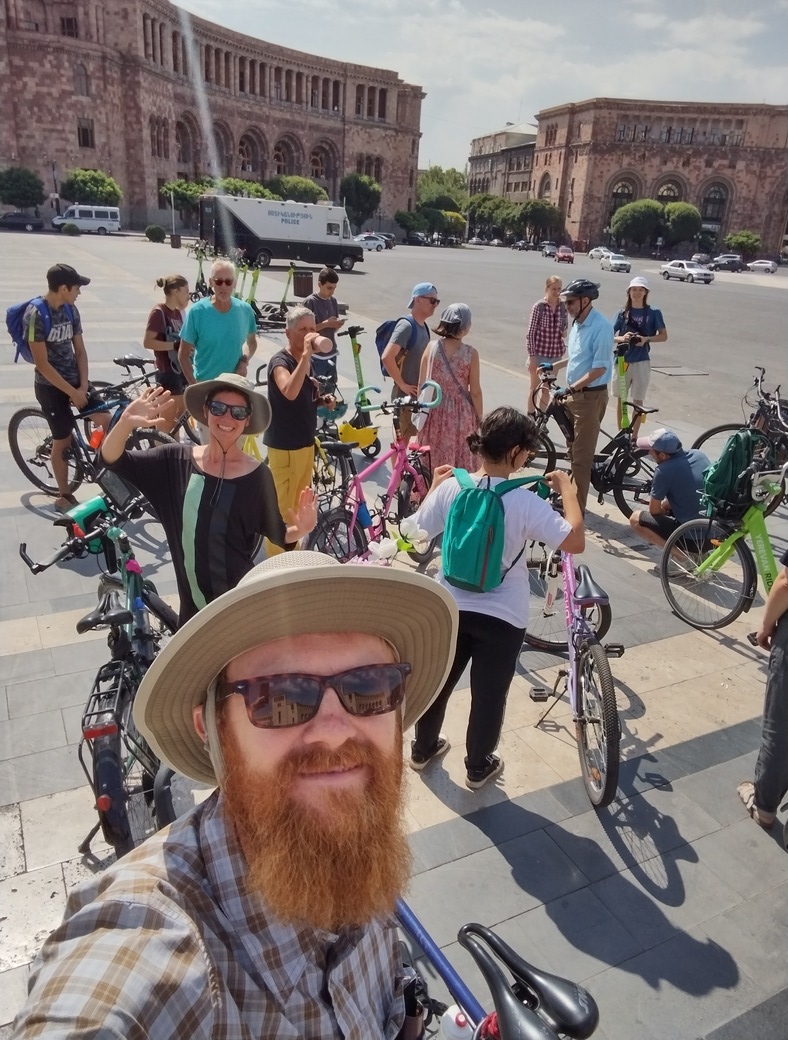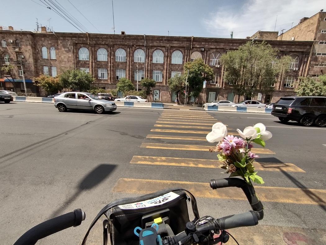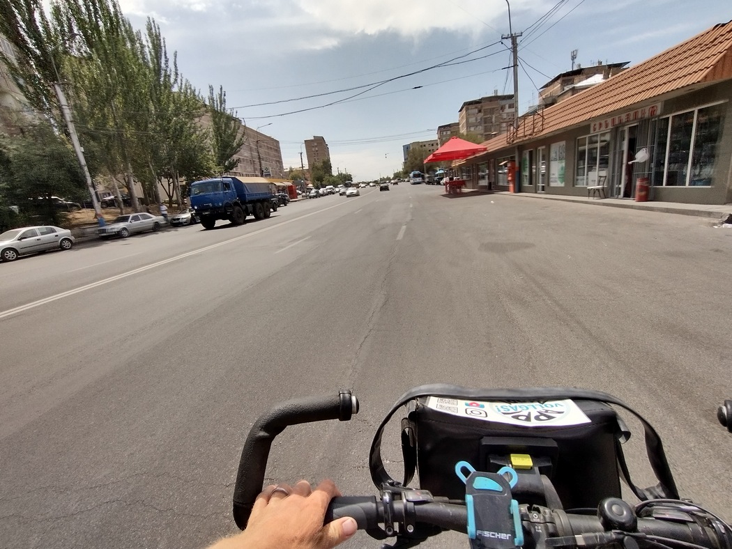Stolz können wir noch verkünden, dass wir bei der zweiten 1. Critical Mass von Yerevan dabei waren! Dabei kamen Heimatgefühle auf, denn die familiäre Größe erinnerte uns an die guten alten Wiesbadener Zeiten. Zum Schaden von Yerevan zogen wir am nächsten Tag weiter und können die critical mass nicht dabei unterstützen zu wachsen. Unseren Support als erfahrene Promoter, Korker, Vorfahrer und natürlich Bass-Bike-DJs hätte die Gruppe dringend nötig gehabt, zumal bei ihrer 2. Gründung (einen ersten Versuch hatte es bereits 2006 gegeben) waren etwa die Hälfte der Teilnehmer:innen ausländische Tourist*innen. Unter ihnen war auch ein Paar aus Berlin, dass bereits zum zweiten Mal im Leben für eine große Radreise ihr altes Leben (also Beruf und Wohnung) vollständig aufgegeben hatten.