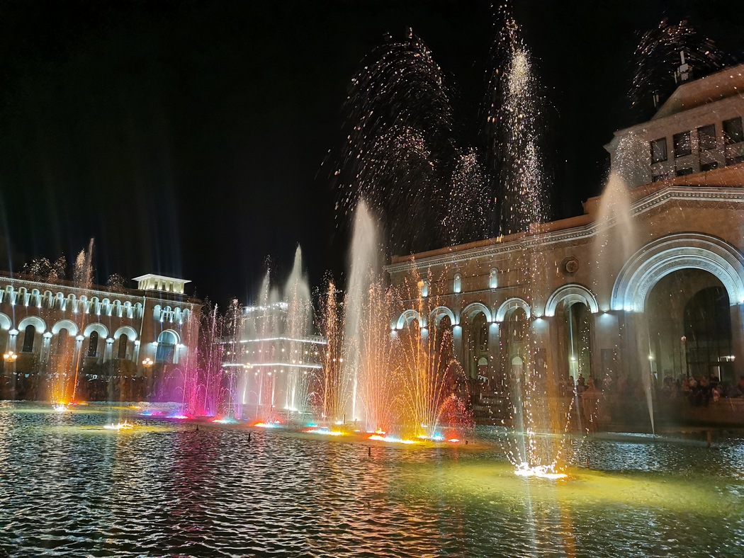 Am besten ließ es sich nachts in der Stadt aushalten. Am ersten Abend wurden wir auch sogleich von zwei netten Yerevanern mit in bei jungen Leuten beliebte Pubs geschleppt. Wir kamen uns nur etwas zu alt vor, was wir auch daran merkten, dass unsere neue Bekanntschaft “the real Silm Shady” als “Song from my childhood” bezeichnete. Die Musik der 90er und frühen 2000er sind auch in Armenien zur Mainstream-Partymusik auserkoren worden, was uns dazu veranlasste nicht allzu lange in der Kneipe zu bleiben. Eigentlich hatten wir uns für die zweite Nacht einen Besuch in einem angesagten Techno-Club vorgenommen, doch die Berliner Eintrittspreise und die ermüdende Hitze des Tages ließen uns auch hier kapitulieren. Wir verbrachten den Abend dann auf der Yerevan-Kaskade und genossen die Aussicht auf die nächtliche Stadt.