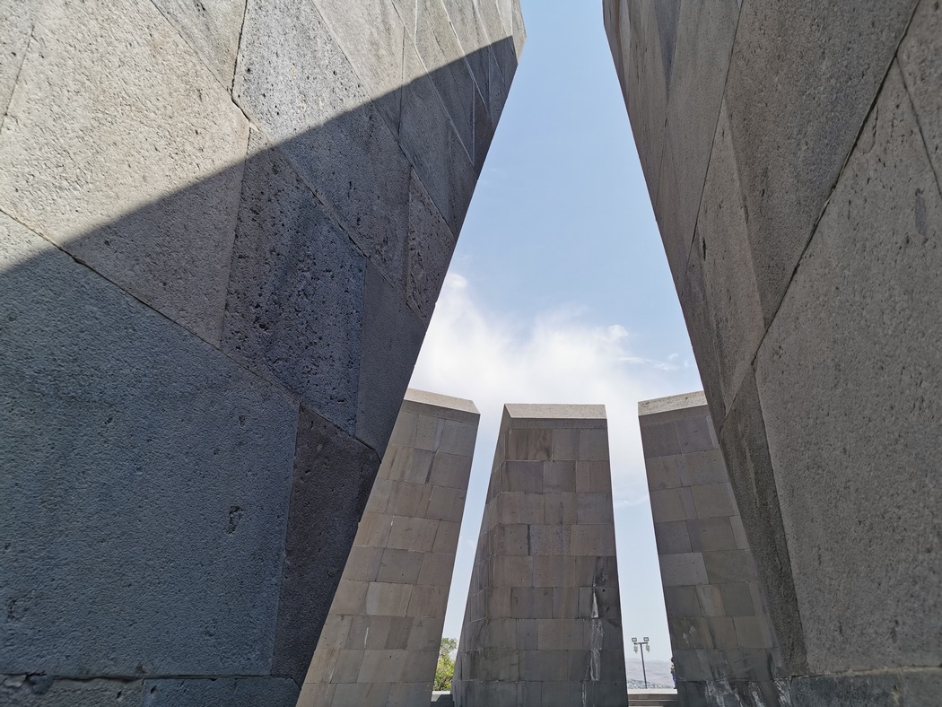 Unser Einkaufs-Erfolg war dagegen bescheiden. Wie in den zuvor bereisten Ländern verhielt es sich auch hier: Eigentlich ist alles teurer als in Deutschland, sogar der Billigschrott. Wir entschieden uns gegen den Konsumzwang und reisen nun weiter ohne perfekte Gepäckträgertasche für Julia, ohne Yogamatte/bessere Picknickdecke und mit Turnschuhen ohne Profil, bei denen sich die Nähte lösen. Auch Micropur oder ein Wasserfilter waren in der Stadt nicht aufzutreiben. Unsere Annahme bei der Planung unserer Reise, wir könnten immer noch Ersatzteile oder Outdoor-Equipment besorgen, sobald wir es bräuchten, erwies sich einmal wieder als falsch. Immerhin konnten wir in Armeniens (vermutlich) einzigem Outdoor-Laden eine Dose Imprägnierspray für unser Zelt auftreiben. Auch weil die Hitze unerträglich war, brachen wir das Unterfangen „Dinge besorgen“ nach einem halben Tag ab. Wichtiger erschien uns ohnehin ein Besuch im Genozid-Museum, das unserer Meinung nach sehr gelungen ist, wenngleich die sehr textlastige Ausstellung einem natürlich lediglich einen sehr kleinen Eindruck des Ausmaß des Grauens vermitteln kann.
