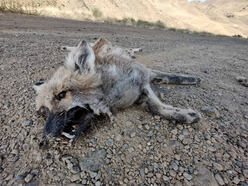 So schafften wir an diesem Tag lediglich gut 50 km und fanden einen halbwegs passablen Schlafplatz in einem trockenen Flussbett. Peinlich genau achteten wir darauf mit den Reifen bloß nicht durch die überall herumliegenden Dornen zu fahren, was uns glücklicherweise diesmal auch gelang. Trotz dass unser Lager von der Straße aus sehr leicht einsehbar war, blieben wir von Menschen unbehelligt und bekamen lediglich Besuch von einem friedlichen und scheuen Hunderudel. Im Gegensatz zu den Zweibeinern waren die Straßenhunde hier im Land sehr zurückhaltend, bellten kaum und bettelten auch nicht, sondern lugten nur aus sicherer Entfernung aus dem Gestrüpp. Allerdings hörten wir den ganzen Abend einen Schäfer Kommandos brüllen, die unserem Anschein nach bei seinen Schafen auf taube Ohren stießen, denn die Kommandos begleiteten uns bis in den Schlaf, als es bereits finstere Nacht war.