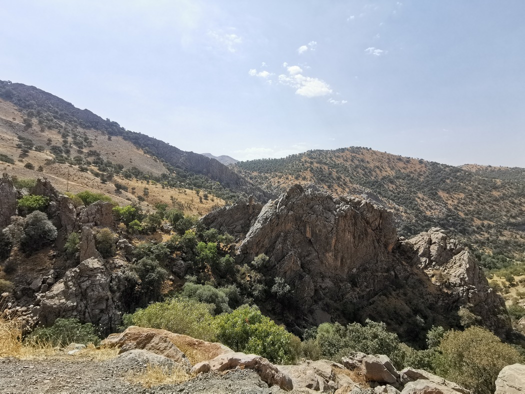 Über die Unterschiede der Kulturen grübelnd, drangen wir nun noch tiefer nach Kurdistan vor. Die Landschaft wurde nun wirklich sehenswert (wobei das Niveau niemals wirklich den vor kurzem bereisten Süden Armeniens überbieten konnte), aber auch anstrengender zu durchqueren. Zunächst fuhren wir durch eine Felsenschlucht und dann stetig bergauf. Gegen Nachmittag erreichten wir den touristisch relevanten Ort Uraman. Besonders hier fiel uns auf, dass auch alle Frauen und auch die Mädchen – von denen uns einige ärgerten, während wir Wasser holten – die traditionelle Kleidung aus langen taillierten Kleider, kleinen Westen und verzierten Kopftüchern trugen, ein Outfit das eine Karnevalsbesucherin im weit entfernten Rheinland womöglich als Zigeunerin missinterpretieren würde. Allerdings war Tag 159 unserer Reise auch ein Donnerstag, also bereits Wochenende und uns wurde vermittelt, dass die Mädchen eine Art religiösen Unterricht besuchten, vermutlich vergleichbar mit der Konfirmationsschule.
