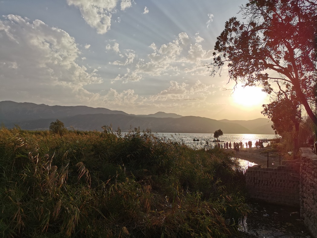 Die Liegefläche im See-Terrassen-Café lud zwar zur Entspannung ein und da der Wortaustausch mit unseren beiden selbsternannten Fremdenführern langsam zum Erliegen kam, erhofften wir nun einfach in bilateraler Verbundenheit auf den See blicken zu können. Weit gefehlt, denn dieses Land duldet keine Ruhe. Zwei stark geschminkte Frauen, eine parfümiert und die andere Zahnspange tragend, wurden auf uns aufmerksam. Sie hießen uns in ihrem Land, ihrer Stadt und an diesem See willkommen und wollten selbstverständlich auch gemeinsam mit uns abgelichtet werden. Während der Selfie-Session ging die Parfümierte ganz schön auf Tuchfühlung und saß sich trotz der hohen Temperaturen eine Weile fast auf Julias Schoß, was aufgrund der beiderseitigen Schweißausbrüche nicht gerade zum Wohlbefinden betrug.
