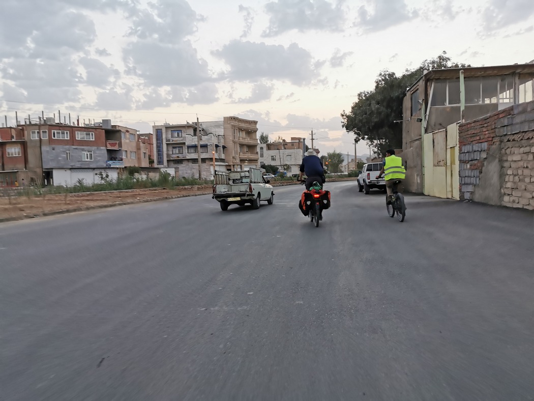 Egal wo wir Pause machten in diesen Tagen (und eigentlich blieb das über weite Teile unserer Iran-Passage auch so), kam, auch wenn zunächst keiner in Sicht war, immer irgendwo doch ein Iraner hervor, setzte sich neben uns, erkundigte sich über unsere Herkunft und über unser Befinden. So auch an diesem Tag in der Stadt Paveh, die wir am Vormittag durchfuhren und nach Betrachtung auf der Karte für ein kleines Nest gehalten hatten. Die in einer Kurve eines Tals gelegene Stadt entpuppte sich dann allerdings doch als erstaunlich groß und stellte verkehrstechnisch mal wieder alles in den Schatten, was wir bisher erlebt hatten. Obwohl man durch ihre Kurvenlage viele Orte innerhalb der Stadt auf sehr kurzem Weg zu Fuß hätte erreichen können, wie die Enterprise, die durch den von ihr gefalteten Raum mit Überlichtgeschwindigkeit reist, zog es offenbar jeder Einwohner und jede Einwohnerin vor, sich auf dem 10-fachen Weg mit dem Auto in der zwanzigfachen Zeit um das Tal zu winden und damit den Weg durch die Hölle zu wählen wie die Event Horizon, jedoch ohne durch ein Wurmloch geflogen zu sein. Das Ergebnis war Stau, durch den wir uns mit unseren Rädern im Zick-Zack versuchten durchzuwinden.
