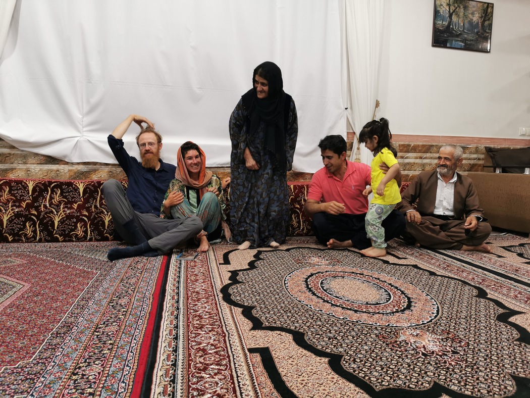 Als wir wieder zu zweit waren, fühlten wir uns befreit und radelten euphorisch den vor uns liegenden Bergen entgegen. Der ganze Trubel war uns doch eine Nummer zu groß. Wir hatten im Hostel in Täbris bereits mit einer jungen Iranerin über den Unterschied von Familien in Deutschland und Iran gesprochen. Sie meinte, deutsche Familien seien sich nicht so nah. Wir relativierten das diplomatisch, denn auch wir fühlen uns eng mit unseren Familien verbunden. Aber langsam begriffen wir, dass hier wirklich eine andere Art von Nähe vorherrschte. Den Inhalt der Gespräche zwischen den Familienmitgliedern können wir nicht beurteilen, aber es wurde uns sehr deutlich, dass sich die Menschen körperlich sehr nahe sind und das außerdem die meiste Zeit des Tages. Es wirkt auf uns, als ob innerhalb der Familie kein Wunsch besteht, auch mal alleine sein zu wollen. Die Wohnung bestehen ob klein oder groß aus einem zentralen Raum in dem alles passiert: kochen, essen, schlafen und einfach rumsitzen. Eigene Räume für einzelne Menschen sind auch in offensichtlich wohlhabenderen Haushalten überwiegend nicht vorgesehen. Aber auch gegenüber uns als Fremden gibt es kaum Distanz. In diesem Punkt fällt es uns schwer aus unserer Haut zu kommen, wie brauchen unseren Rückzugsraum und schätzen es allein zu sein, etwas, das man als Radfahrer nicht immer sicherstellen kann, da wir keinen „save space“ mit uns führen, wie beispielsweise Reisende, die mit einem Campingbus oder Expeditionsmobil unterwegs sind. Wie wir von vielen anderen Radreisenden gehört haben, geht es nicht nur uns so: Auch wenn viele die Gastfreundlichkeit/Gastfreudigkeit der Iraner schätzen, gibt es wahrscheinlich ebenso viele, die diese ganz klar ablehnen und sich kaum einladen lassen.