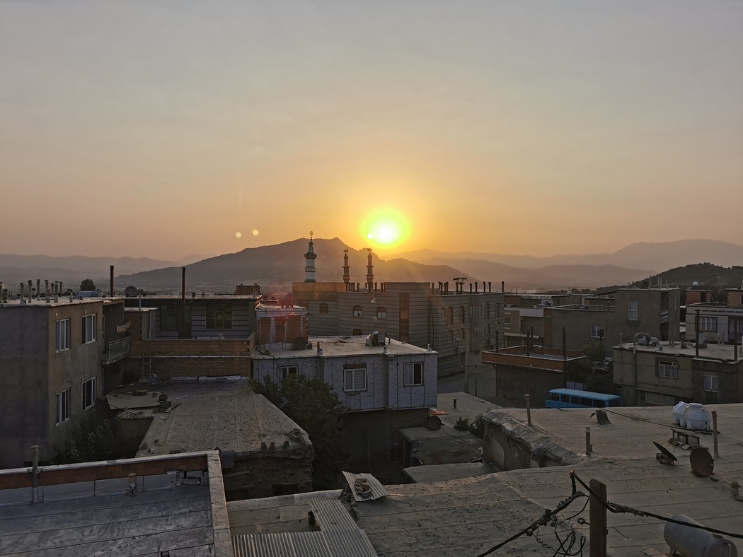 Als wir das Fleisch ablehnten, ernteten wir eine Menge Unverständnis und bekamen stattdessen Tomaten. Mit den beiden Kurden (deutlich erkennbar durch die traditionellen Pluder-Hosen, die hier jeder Mann trägt, egal welchen Alters) war leider kaum inhaltlicher Austausch möglich, trotzdem fühlten wir uns wohl, lachten viel und einer der beiden sang nach dem Essen noch eine Art Lob-Gesang, der allem Anschein nach eine spontane Improvisation war und uns in die Lobbreisung miteinbezog. Diese Einladung hatte übrigens unseren ersten Aufenthalt in einem iranischen Privathaushalt zur Folge. Schon etwa eine Stunde später betraten wir auch schon den zweiten Haushalt und konnten feststellen, dass die Einrichtung der beiden netten Pluder-Hosen-Träger nicht für einen improvisierten Junggesellen-WG-Haushalt typisch war, sondern tatsächlich den iranischen Durchschnitt abbildete. Es gab quasi keine Möbel, im Bad wurden keine Hygieneartikel aufbewahrt, Stehklos waren Standard, alles war mit Teppichen ausgelegt (auch die Küche) und es wurde auch auf dem Boden gegessen und geschlafen (ohne zusätzliche Matratze o.ä.).