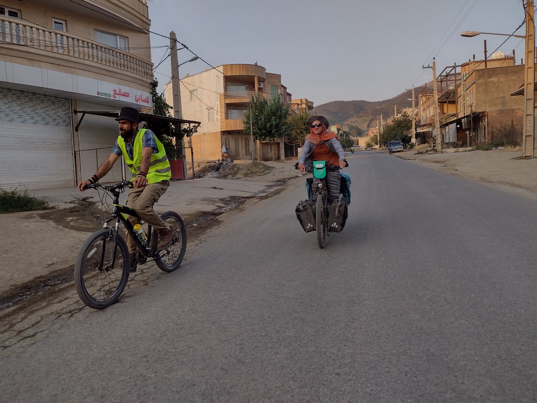 Es dauerte bestimmt 10 Minuten bis die Situation geklärt werden konnte und wir brachen etwas genervt auf zu unserem Nachtlager, zu dem wir nun von dem 4. Mann geleitet wurde, indem er mit seinem Fahrrad – und Warnweste – voraus fuhr. Die Warnweste schien hierbei als Ersatz für eine Fahrradbeleuchtung zu dienen, über die wir natürlich mit unserem Highend-Produkt, dem Son-Nabendynamo verfügen. Der Radfahrer war uns als Cycling-Network-Manager (CNM) (das zur Green Hamrkaban Gruppe (GHG)) gehörte, deren Manager wiederum Obaid war) vorgestellt worden. Ob GHG nun eigentlich das Cycling Network war oder umgekehrt oder das eine jeweils eine Untergruppe des anderen war, konnten wir nicht erschließen. Jedenfalls stellte sich heraus, das GHG eine breit aufgestellte Umwelt-Organisation ist, die neben Fahrradausflügen, Müllsammelaktionen und Baumpflanzungen durchführt sowie Hütten für Straßenhunde baut. Die Unterbringung von Cycling Tourists war ebenfalls ein Standbein der NGO und jedem Radreisenden wird für die Ankunft in Marivan ein persönliches Zertifikat ausgestellt.