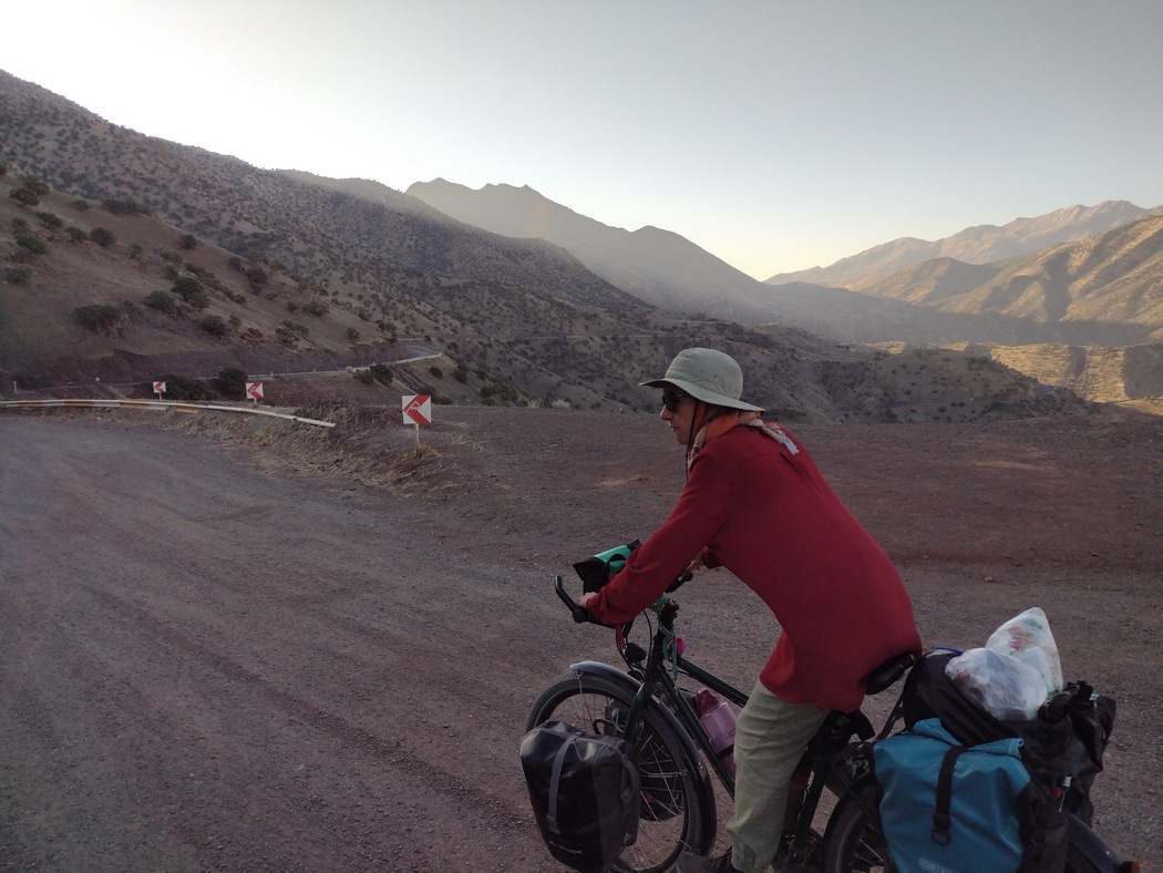 Beim Frühstück blieb es nicht, denn wir wurden noch mit Proviant versorgt und Julia schließlich noch mit einem gold-glitzernden Armband. Schließlich begleitete uns CNM mit dem Fahrrad bis zum Ortsausgang und kündigte an, auf dem Weg ein Video mit uns drehen zu wollen. Die Kommunikation an diesem Morgen lief ausschließlich mit Mimik, Gestik und natürlich einer Übersetzungssoftware. Unterwegs versuchte CNM uns energisch vor ein paar bellenden aber harmlosen Hunden zu schützen, was für uns, die wir nun mit aller Art von Hundeangriffen vertraut waren, nur mit einem Schmunzeln quittiert wurde. Da wir als CNM uns vermittelte, wir könnten nun alleine weiterfahren, noch immer ungefilmt waren, fragten wir höflichkeitshalber, ob wir nun das Video drehen sollten. CNM schrieb uns auf, was wir alles über ihn sagen sollten und verschwand dann ohne uns gefilmt zu haben. Offenbar war er zu der Überzeugung gelang, dass die erbetenen Lobeshymnen von uns nun per Mund-zu-Mund-Propaganda weitergegeben würden.