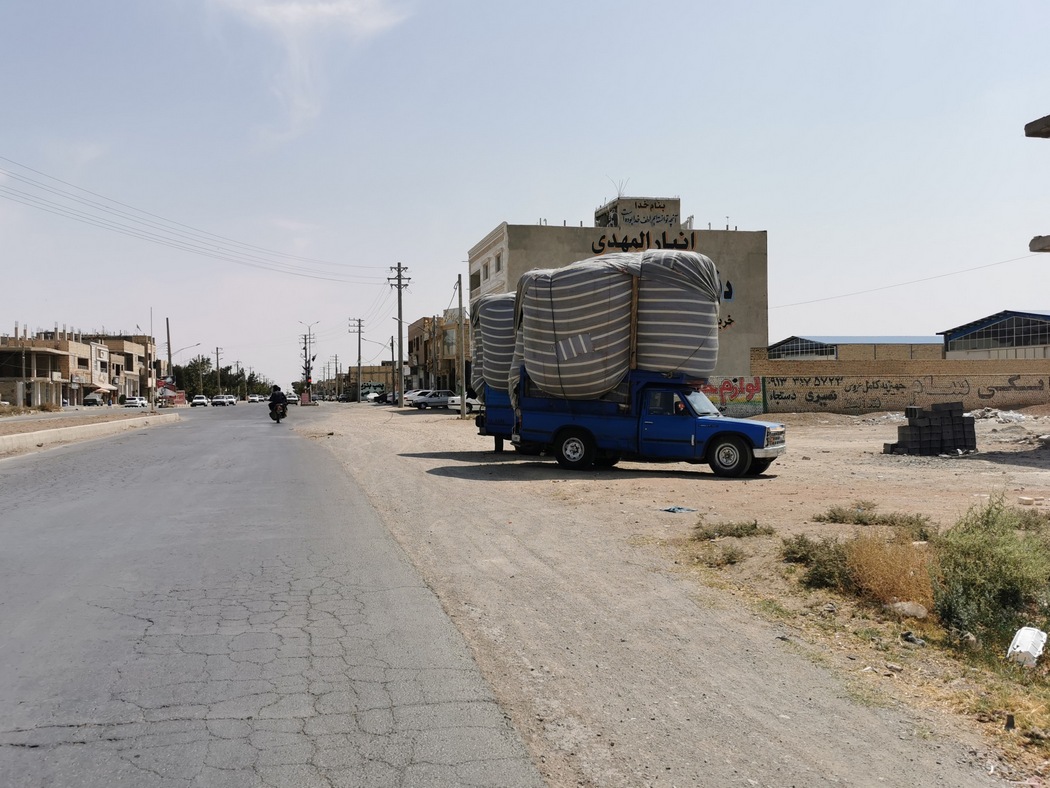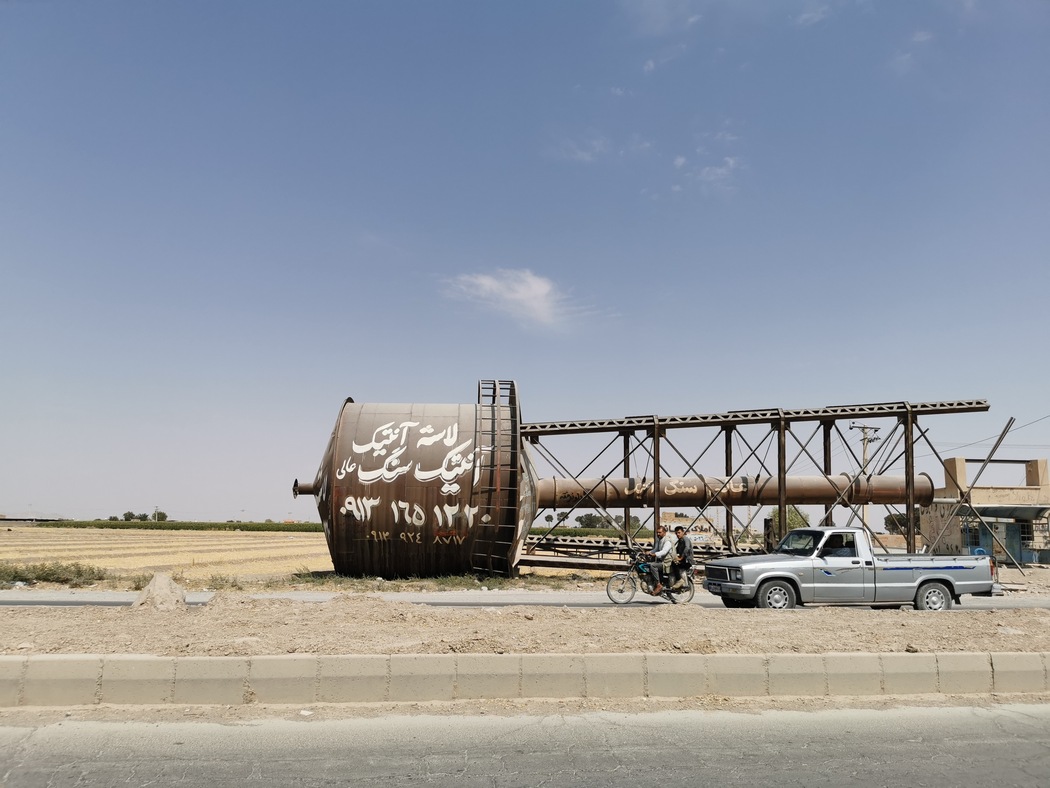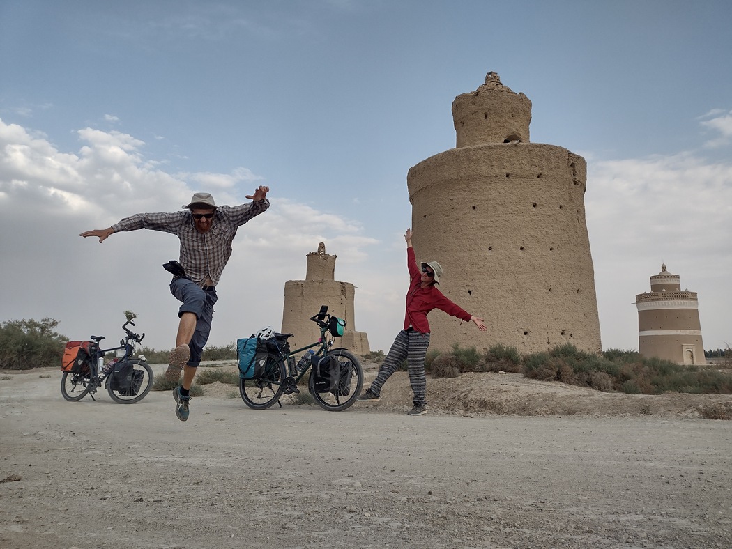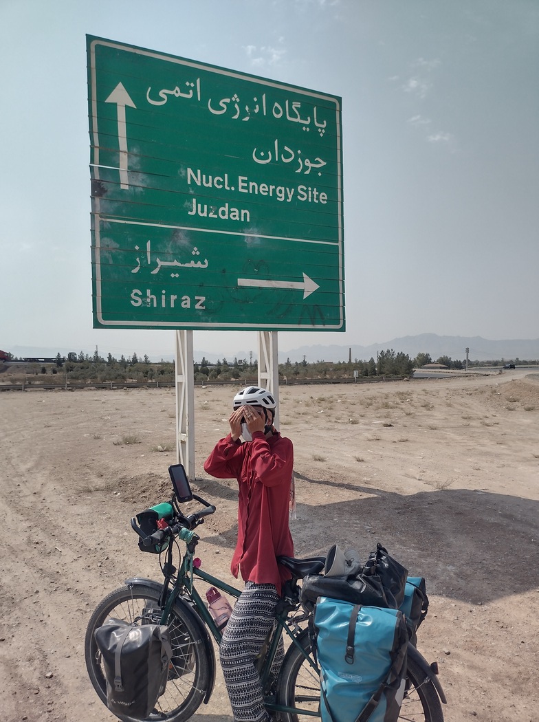 Als wir die Stadt verließen, radelten wir auf nur wenig befahrenen Straßen und kamen auf dem größtenteils leicht abfallenden Gelände in Richtung Osten zügig voran. Da wir noch einen Abstecher in die Wüste machen wollten, nahmen wir nicht den direkten Weg nach Shiraz, sondern fuhren in Richtung Yazd. Gegen Nachmittag wandelte sich die Landschaft und die ersten wüstenähnlichen Flächen waren zu erblicken. Auch die Architektur erinnerte mittlerweile an Mos Eisley, hinter der nächsten Kurve hätte auch die Cantinaband aufspielen können. Die Lebewesen hier hatten jedoch weiterhin 2 Beine, 2 Arme und einen Kopf, hielten sich allerdings im Gegensatz zu ihren Landsmännern aus dem Nordwesten zurück und verwechselten fahrradfahrende Touristen nicht mit Selfie-Dummys.