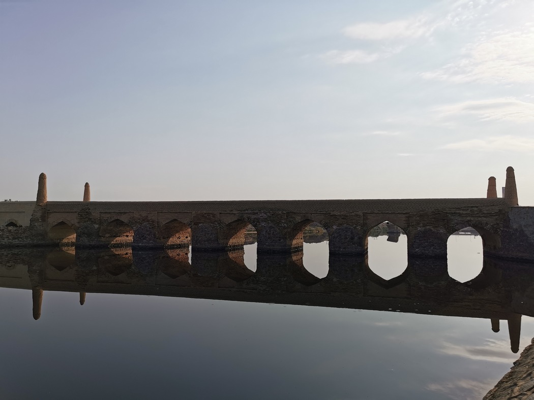 Ohne diese von uns ungeliebten Zwischenfälle konnten wir gut Strecke machen und freuten uns, als wir seit langem einmal wieder auf andere Radreisende trafen, tatsächlich war das im Iran auf der Straße Prämiere. Diese kamen auch aus Deutschland und wollten in einem Monat Armenien und den Iran beradreisen. Bei so einem ambitionierten Plan sind über 100 km täglich Pflicht und so wollten die beiden sich lieber nicht mit uns ein paar alte Wüsten-Türme anschauen. Ausgebremst durch den heftigen Wind, der am Abend aufkam, konnten wir sie auch nicht mehr einholen und mussten schließlich in dem zwar hübschen aber sehr lauten Park von Varzaneh am Ufer des Zayandeh Rud übernachten.