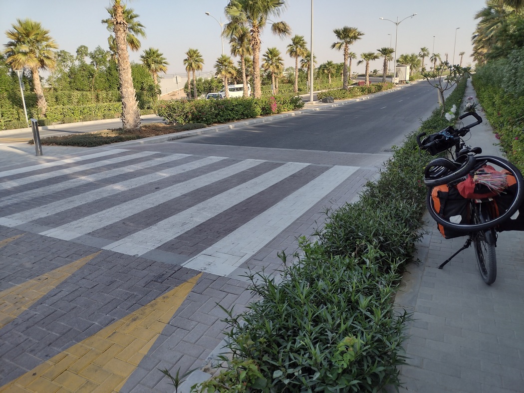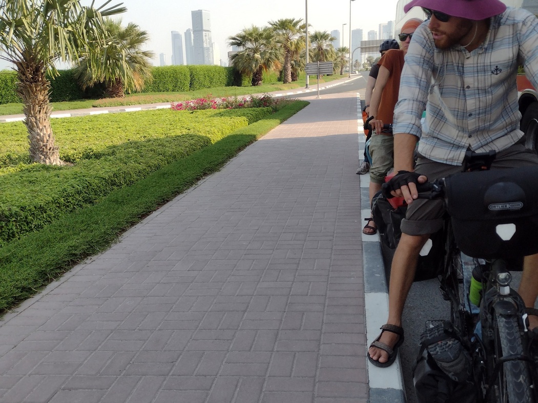 Etwas belustigt lasen wir in einem Artikel, dass der Emir nun den Radverkehr stärker fördern wolle. Dazu wurden in den vergangenen Jahren Gesetze erlassen, die das Radfahren stärker reglementieren. So gibt es nun Verbote auf Straßen zu fahren, wo die Richtgeschwindigkeit bei über 60 km/h liegt, es gibt eine Helmpflicht und die Pflicht eine Warnweste zu tragen. Zu mehr Fahrradwegen haben die Bemühungen offenbar bisher nicht geführt, wir fanden kaum welche.