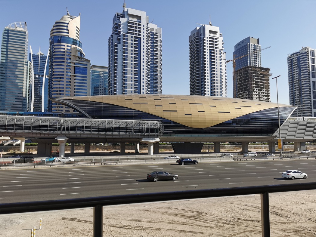 Wir fuhren nun Bauklötze staunend zwischen den unzähligen Wolkenkratzern hindurch und bekamen bald Nackenschmerzen von dem vielen Hals recken. Der Kontrast zum Iran, den wir vor weniger als 24 h verlassen hatten, konnte kaum größer sein. Und auch wenn es natürlich viel berechtigte Kritik an dieser auf Sand gebauten Metropole der Superlative gibt, vor die Wahl gestellt, ob alle Städte der Welt so oder wie beispielsweise Täbris aussehen sollten, so tendierten wir doch deutlich zu der uns hier präsentierten Variante. Allerdings entdeckten wir relativ schnell, dass auch in Dubai nicht alles Gold ist was glänzt. Abgesehen davon, dass es zwischen den auf Hochglanz polierten Türmen erstaunlich wenig grün war (ja, wir wissen dass Dubai in der Wüste errichtet wurde, aber es gibt dort auch eine Skihalle, also darf man darüber ruhig erstaunt sein) gab es auch immer wieder Lücken, die sandig brach dalagen.
